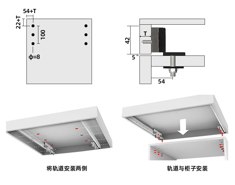 • 측면 당김: 트랙 501-800mm 고정 위치 130mm