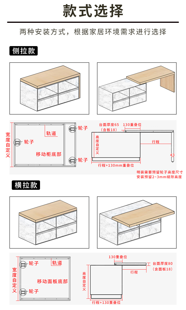 다기능 아일랜드 테이블 슬라이드 레일 개폐식 오픈 키친 번역 확장 중장비 레일 하드웨어 액세서리스토어 가기