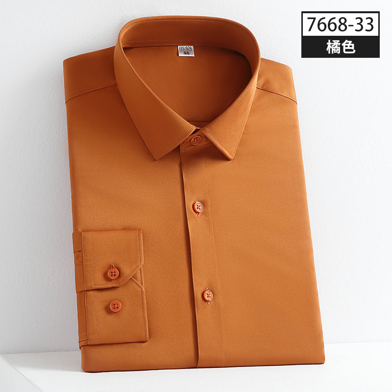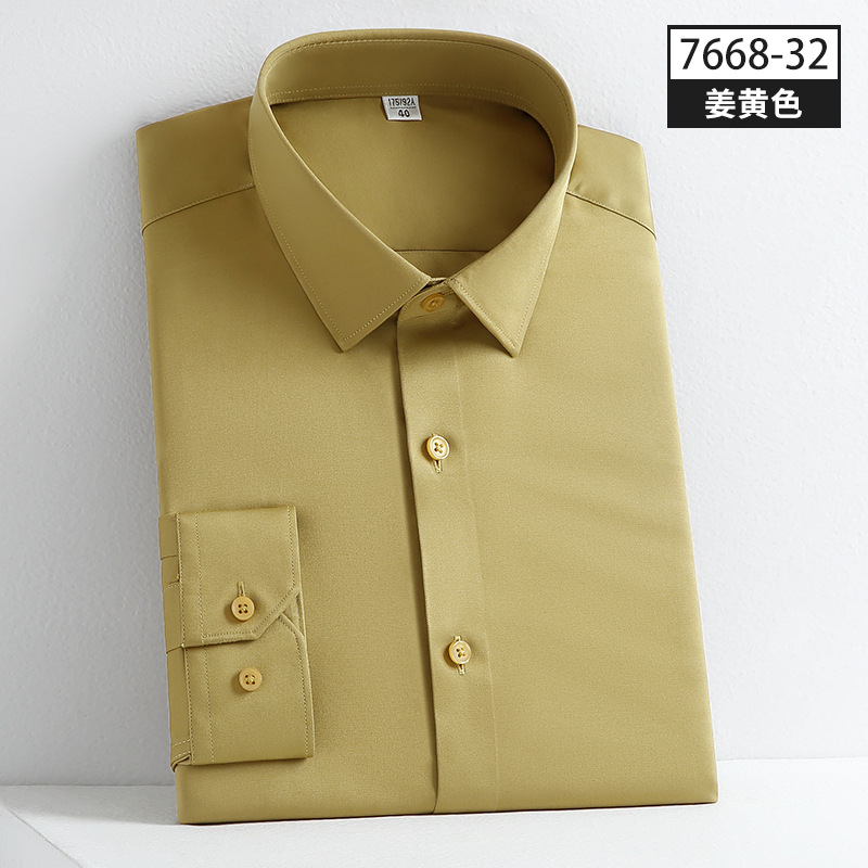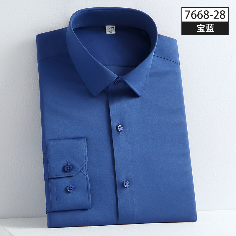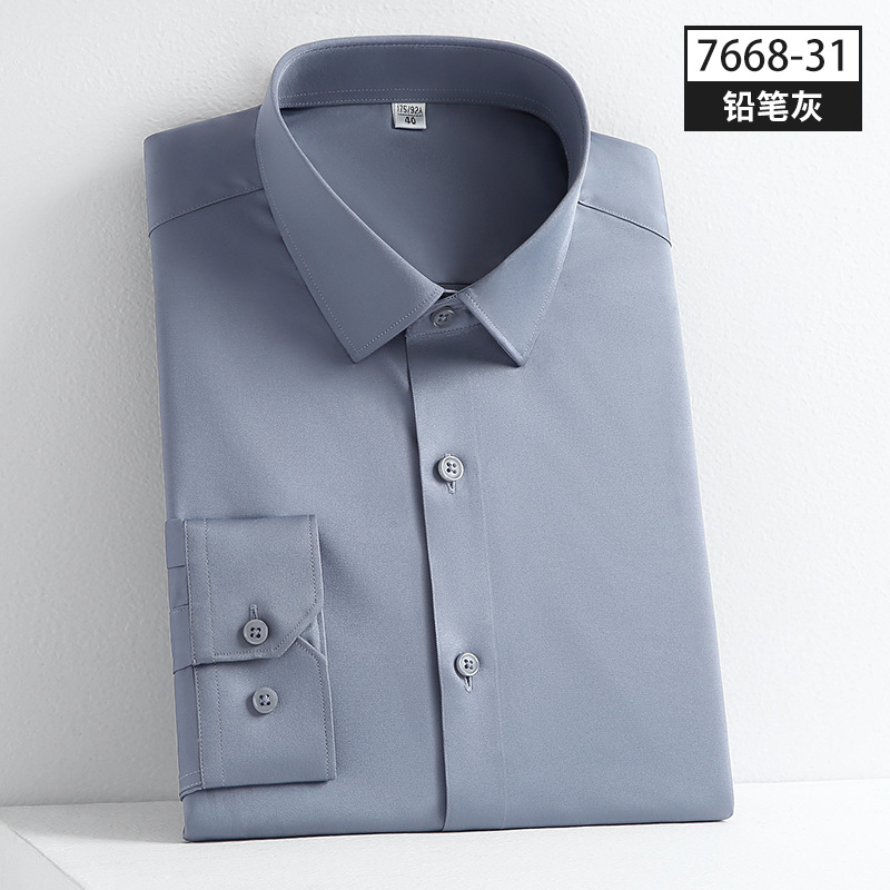 사계절 착용 가능한 고품질 남성 셔츠, 긴팔 단색 비즈니스 캐주얼 전문복, 남성 셔츠, 신축성 있는 주름 방지 실키