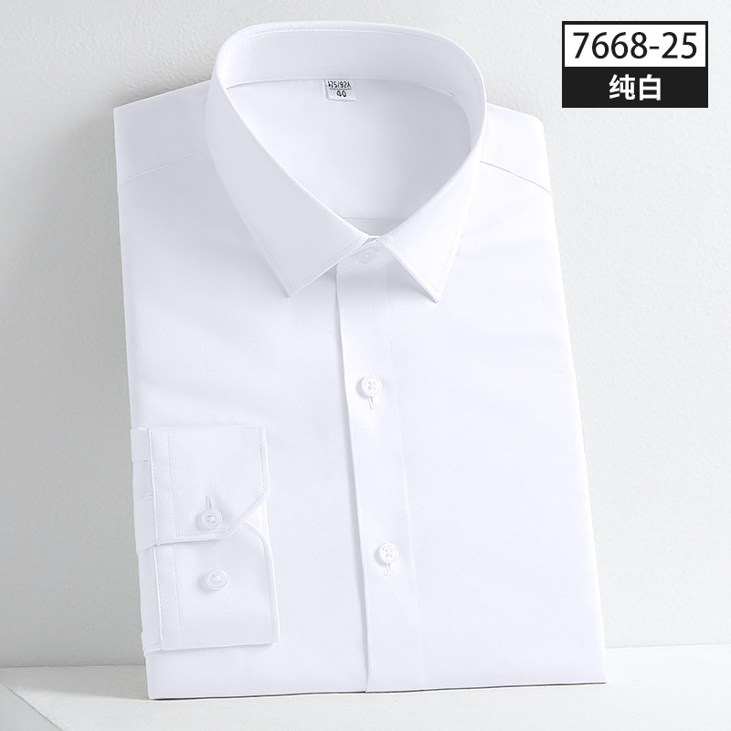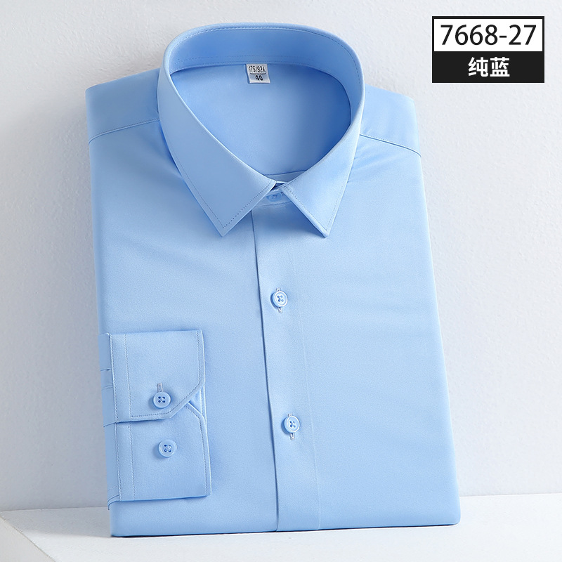 品质男装衬衫四季穿长袖纯色商务休闲职业装男式衬衣弹力抗皱丝滑
