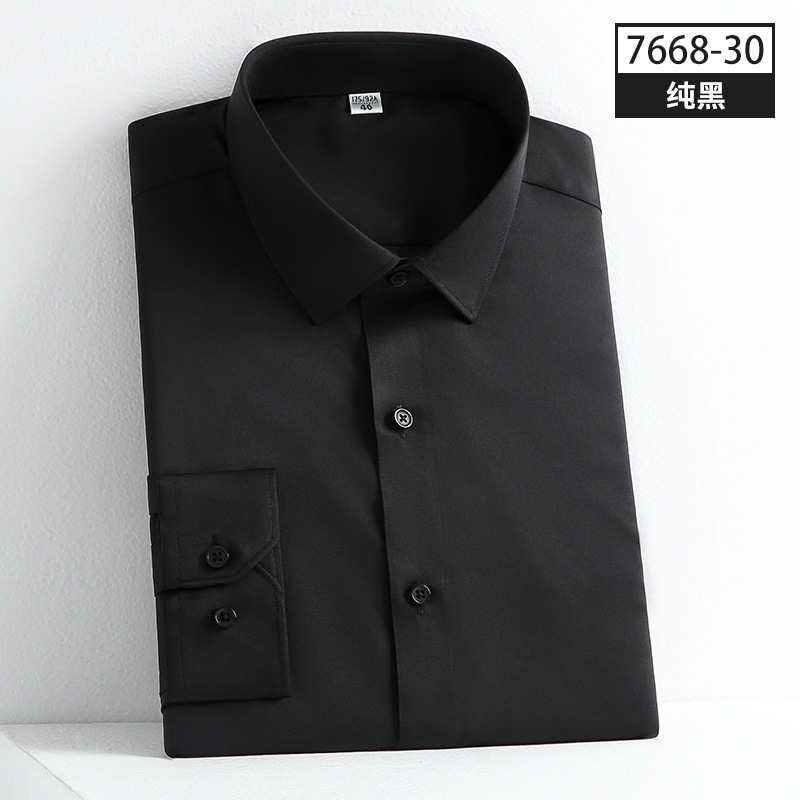 사계절 착용 가능한 고품질 남성 셔츠, 긴팔 단색 비즈니스 캐주얼 전문복, 남성 셔츠, 신축성 있는 주름 방지 실키스토어 가기