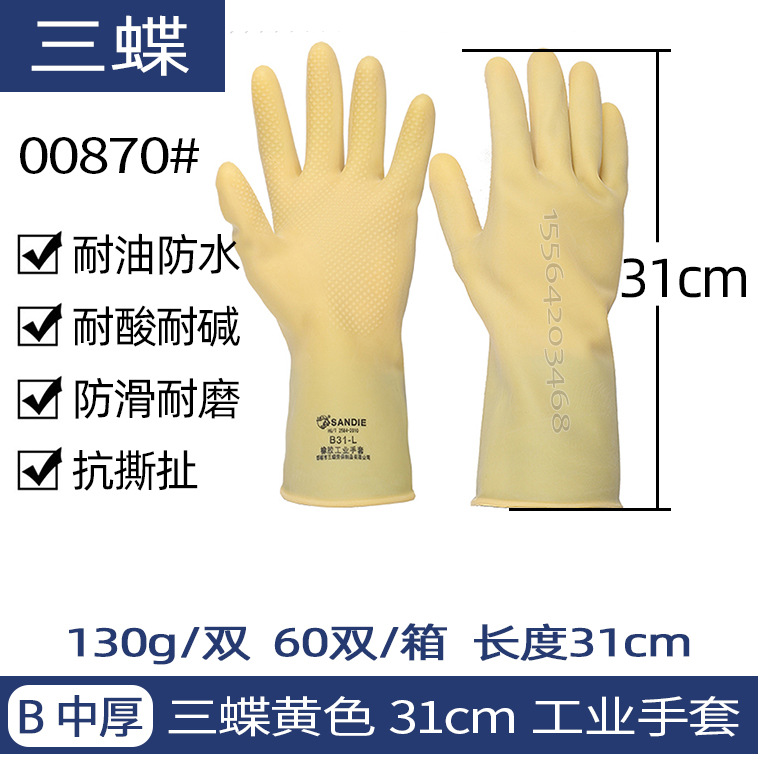 3 나비 여분의 두꺼운 산업용 장갑 두꺼운 방수 미끄럼 방지 산 및 알칼리 내성 31-60cm 노랑 검정 고무 장갑스토어 가기