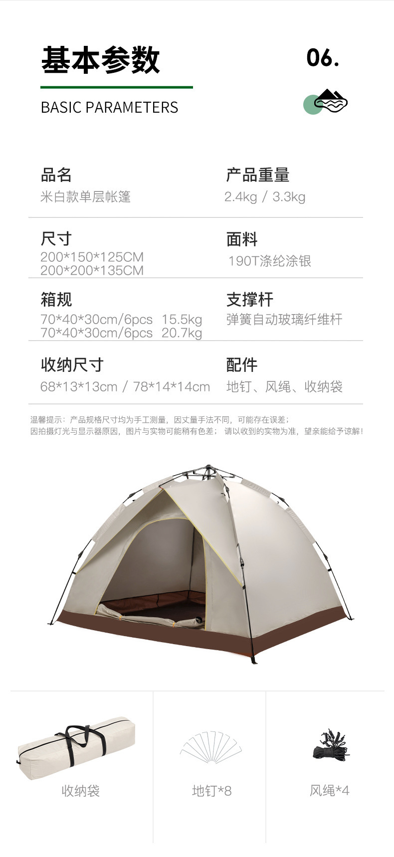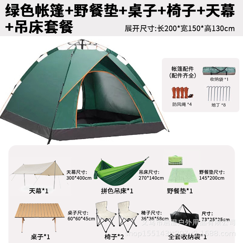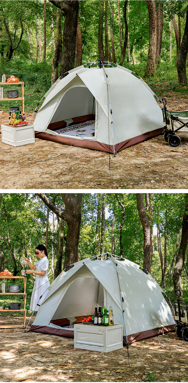 야외 텐트 완전 자동 자외선 차단 및 방풍 빠른 개방형 가정용 접이식 방수 캠핑 가짜 더블 레이어 텐트 3-4인용스토어 가기