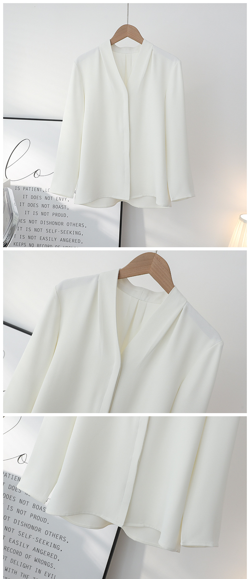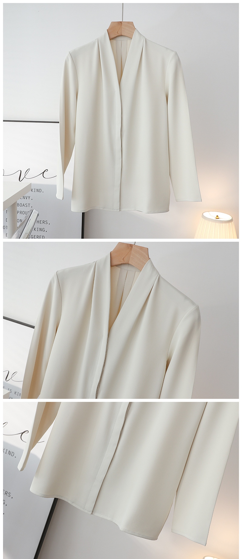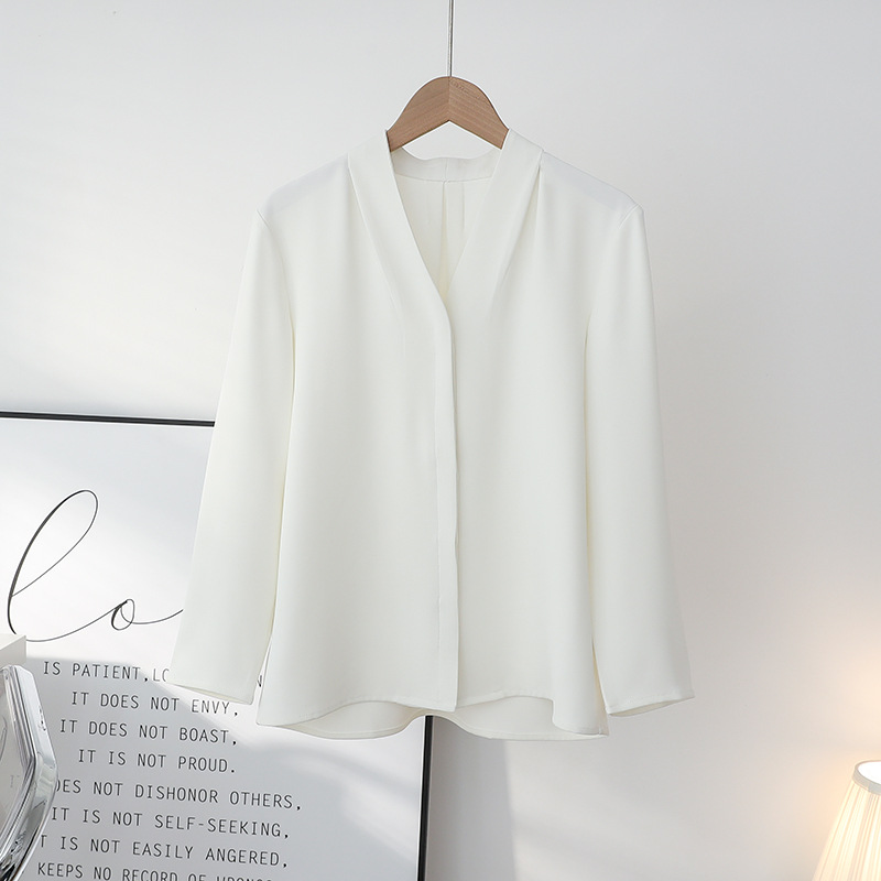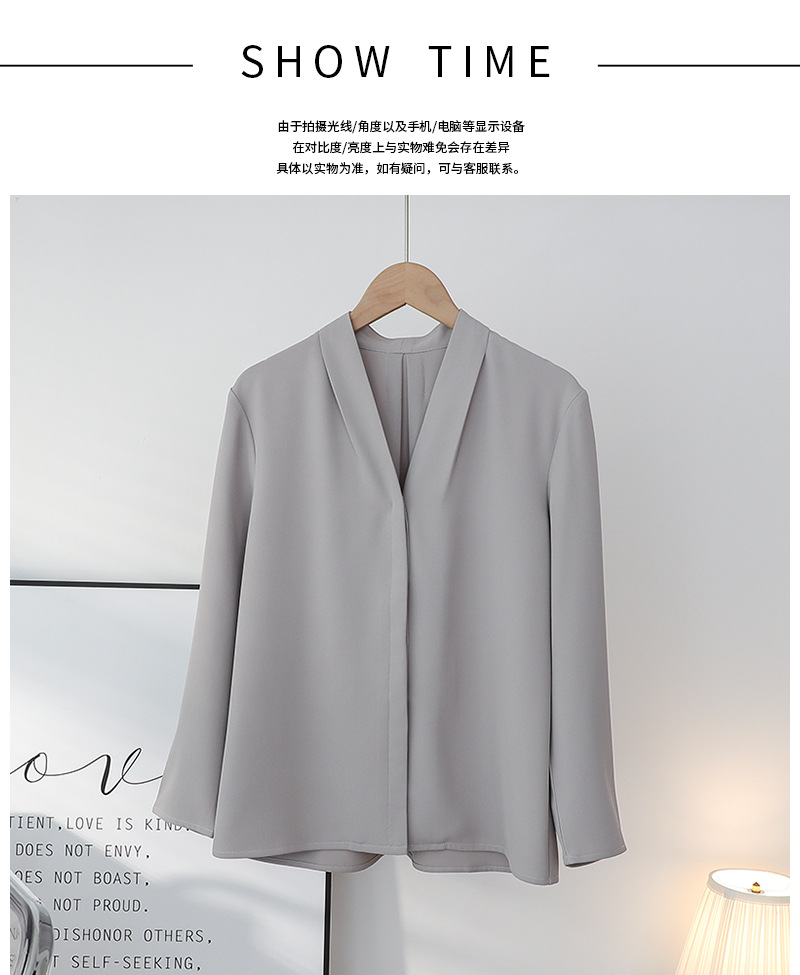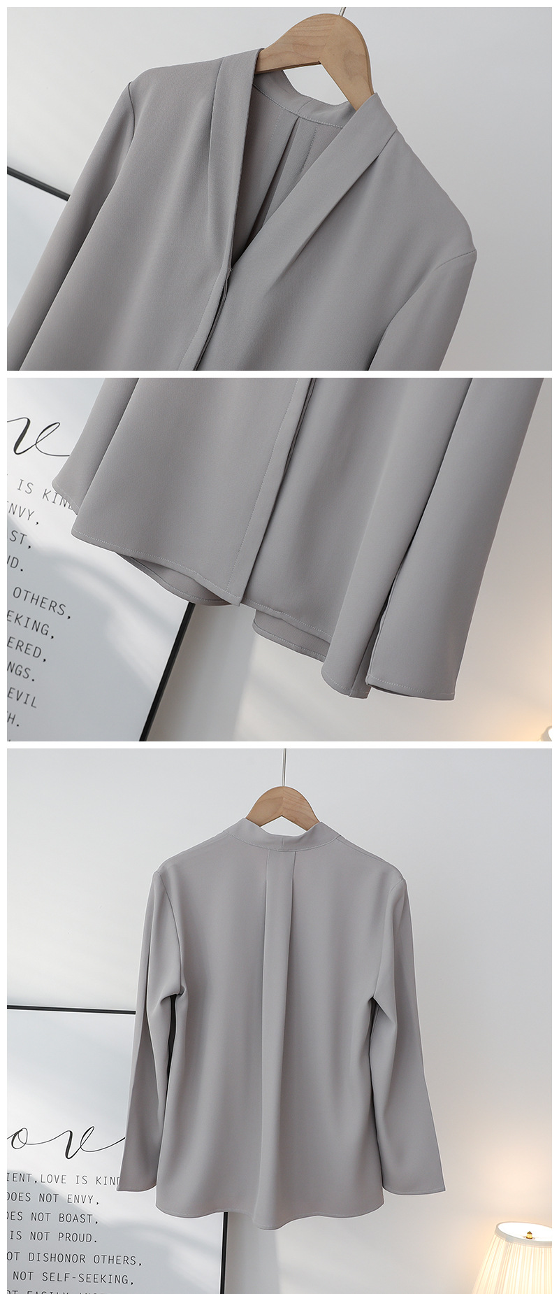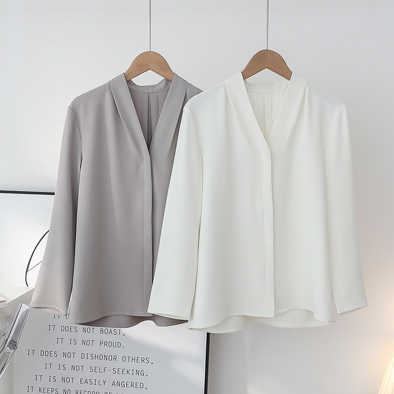 2025 가을, 겨울 새로운 가벼운 성숙한 v 넥 프랑스 긴팔 셔츠 여성 전문 통근 인터뷰 그레이 화이트 탑 여성스토어 가기
