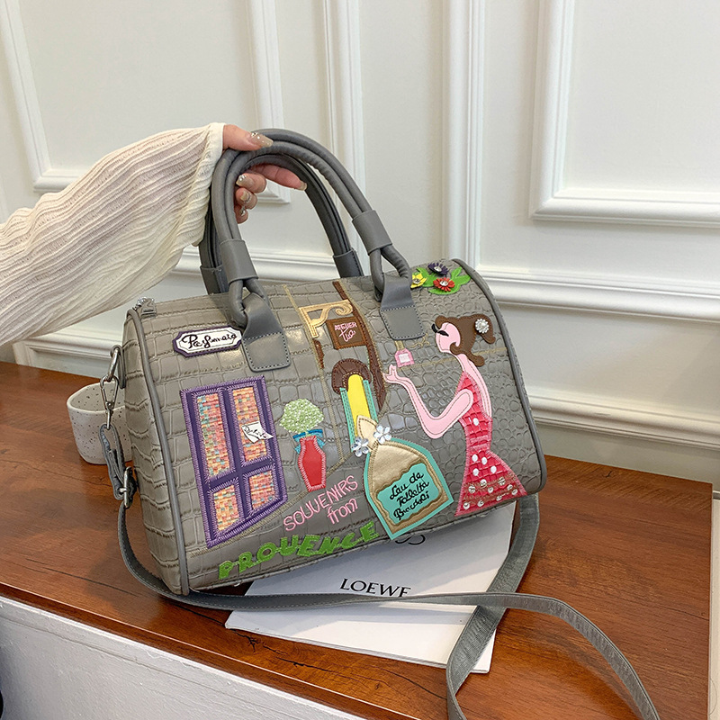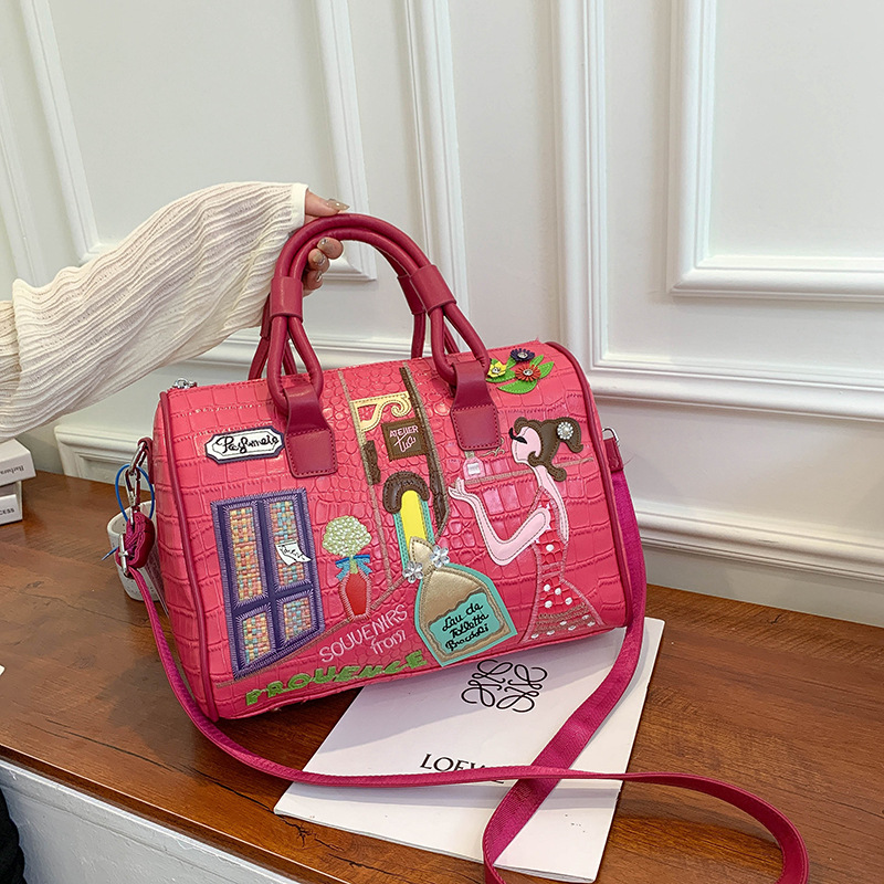 가방 여성의 새로운 핸드백 크로스바디 백 자수 지퍼 스티치 보스턴 가방 베개 가방 대용량 고급 감각스토어 가기
