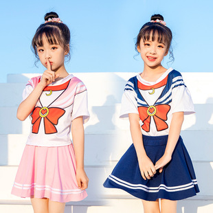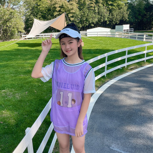 儿童泳衣时尚运动风套装两件套中大童70-100斤女童度假泳装批发