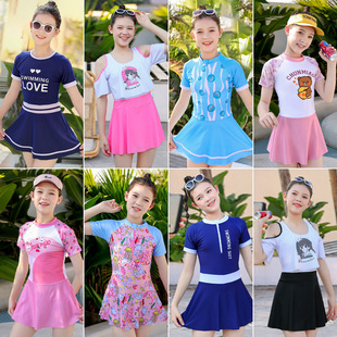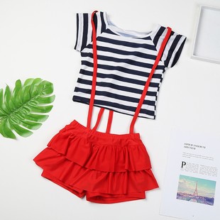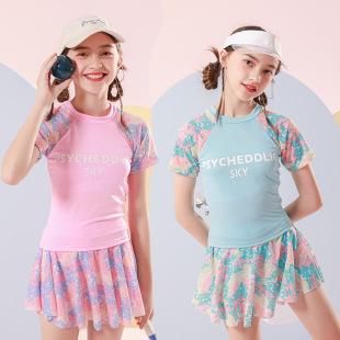 儿童泳衣女孩夏季中小童分体平底裙式女学生温泉度假泳装厂家批发