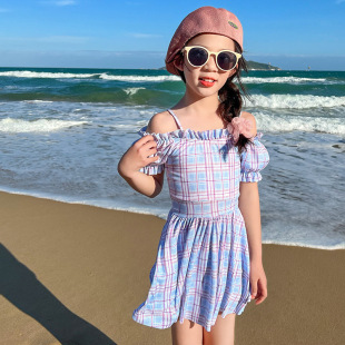 儿童泳衣女童分体可爱女宝宝两件套中大童简约风格子泳装厂家批发
