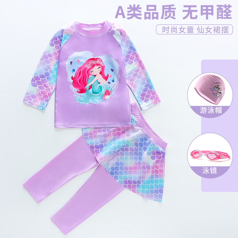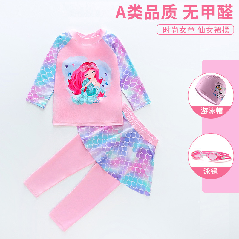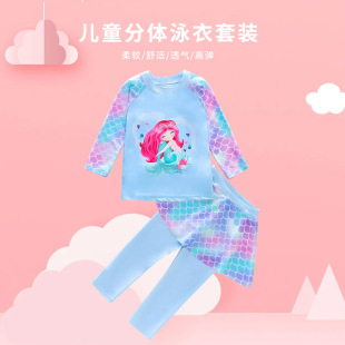 어린이 수영복 소녀 분할 투피스 새로운 긴 소매 수영복 인어 아동복 수영복 도매스토어 가기