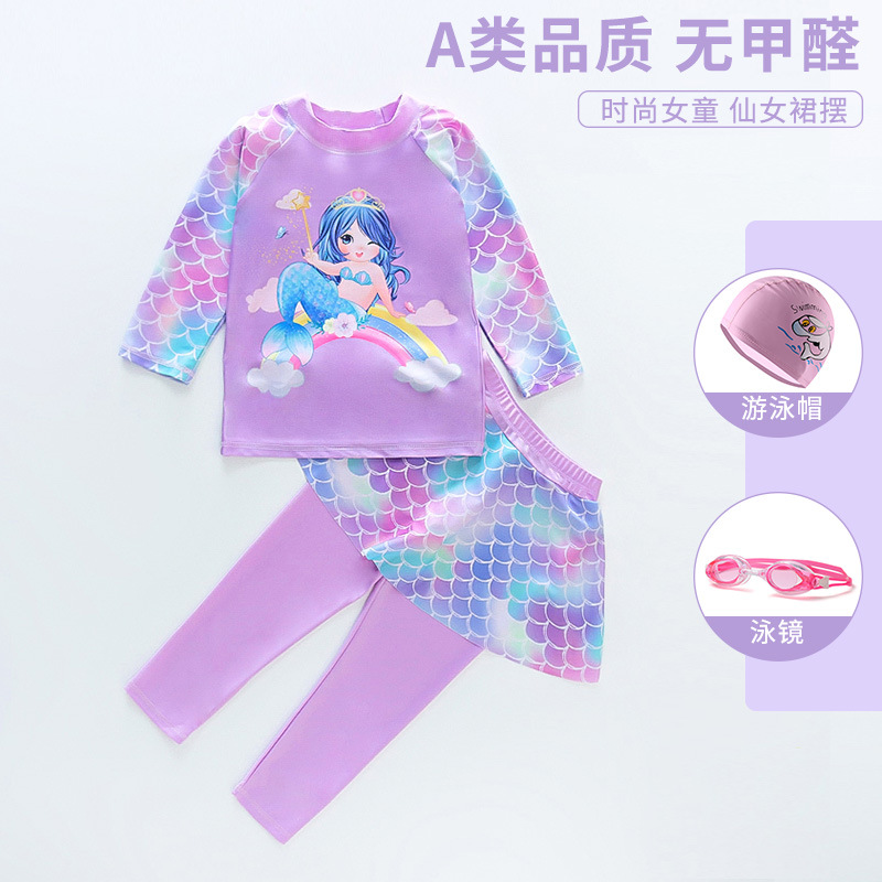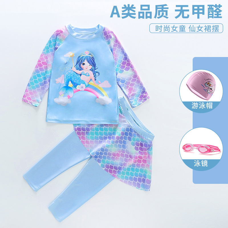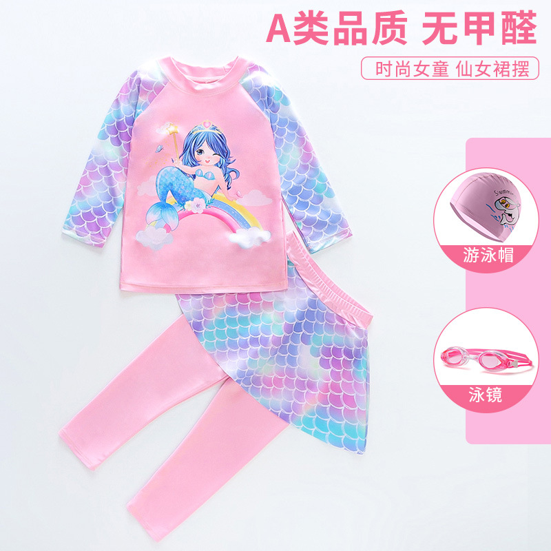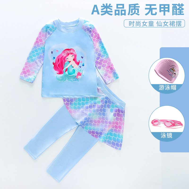 儿童泳衣女孩女童长袖裙式分体美人鱼可爱宝宝小中大童韩版游泳装