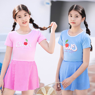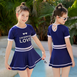 儿童泳衣女童连体运动风公主裙式中大童泳装女孩泡温泉训练游泳衣
