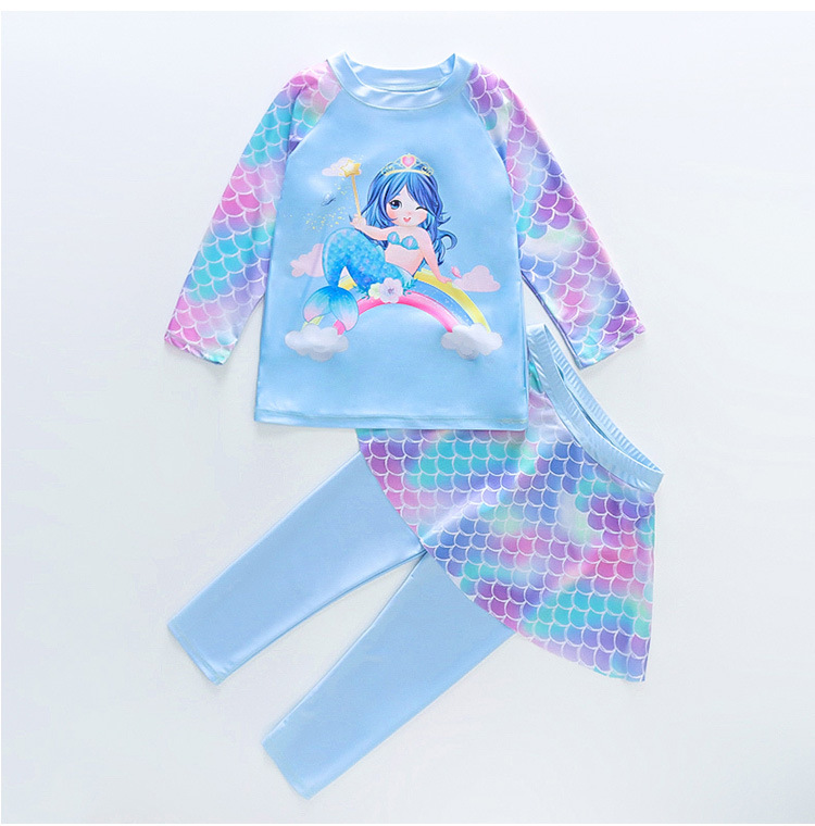 어린이 수영복 소녀 분할 투피스 새로운 긴 소매 수영복 인어 아동복 수영복 도매