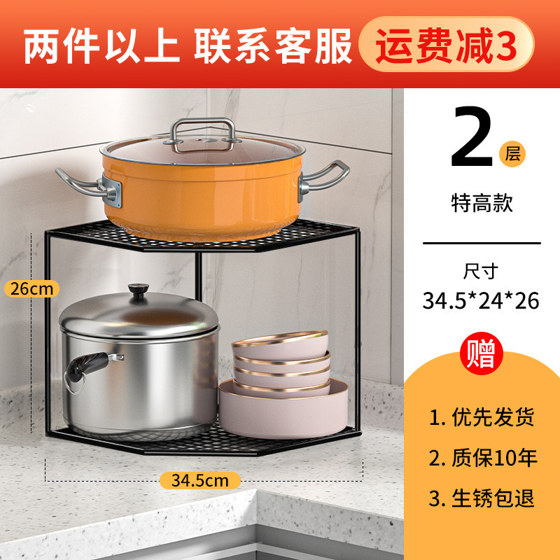 냄비 보관 랙 주방 수납 랙 가정용 하부 싱크 조리대 냄비 랙 캐비닛 코너 레이어드 냄비 랙
