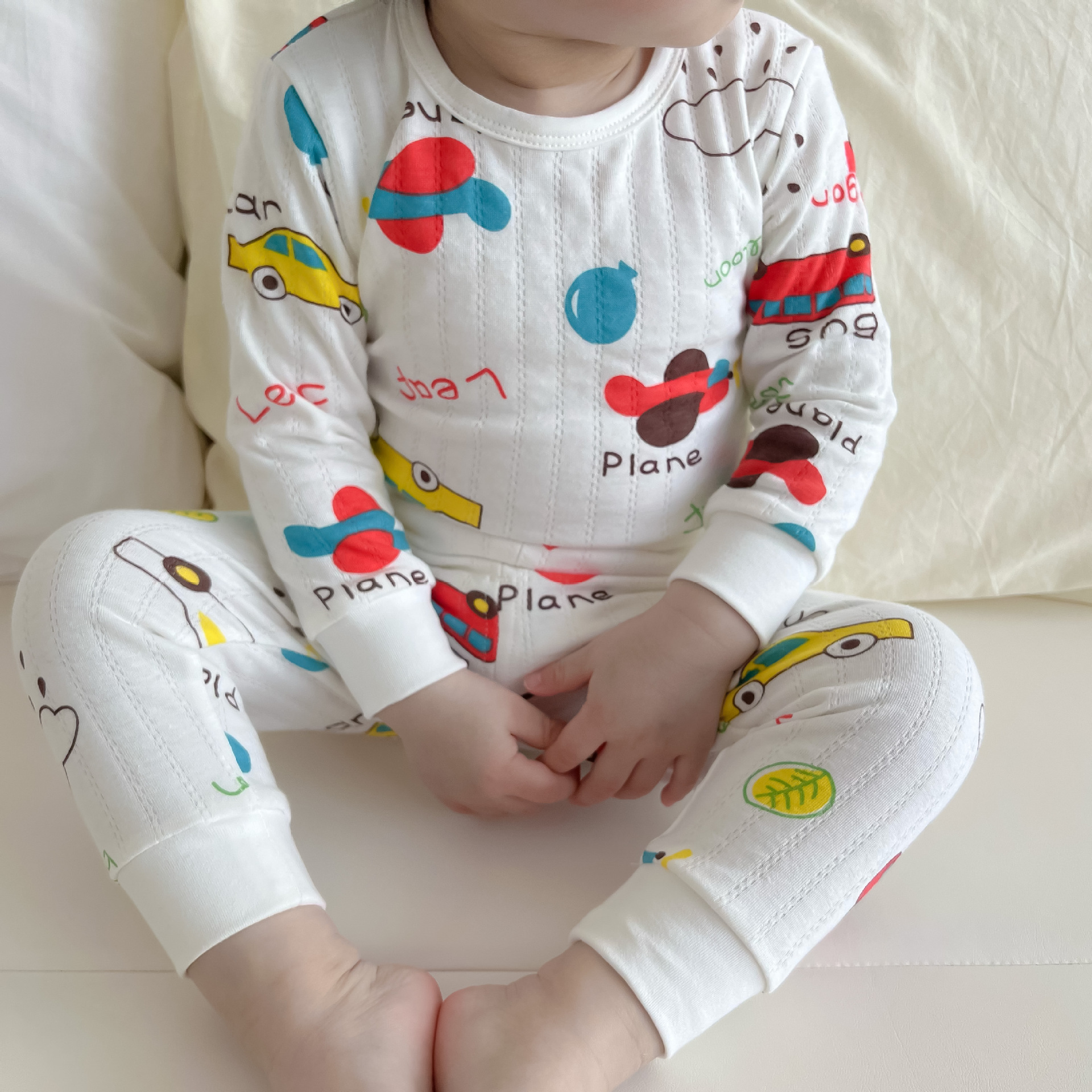 가을과 겨울 아기의 순면 하이 웨이스트 가정 옷 소년과 소녀 더블 레이어 호흡 면 잠옷 아기의 세트 얇은 속옷스토어 가기