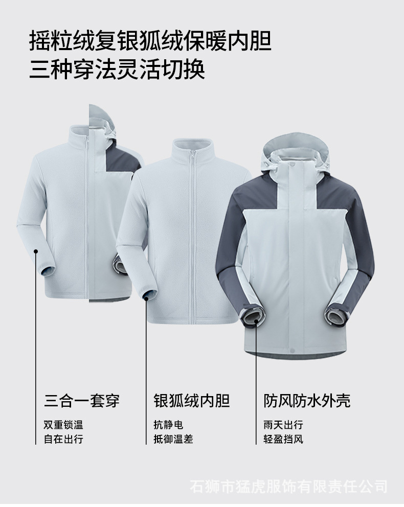 국가표준 GB/T32614 남성용 3-in-1 방수 통기성 압착접착 아웃도어 여성용 재킷 브랜드 대체품스토어 가기