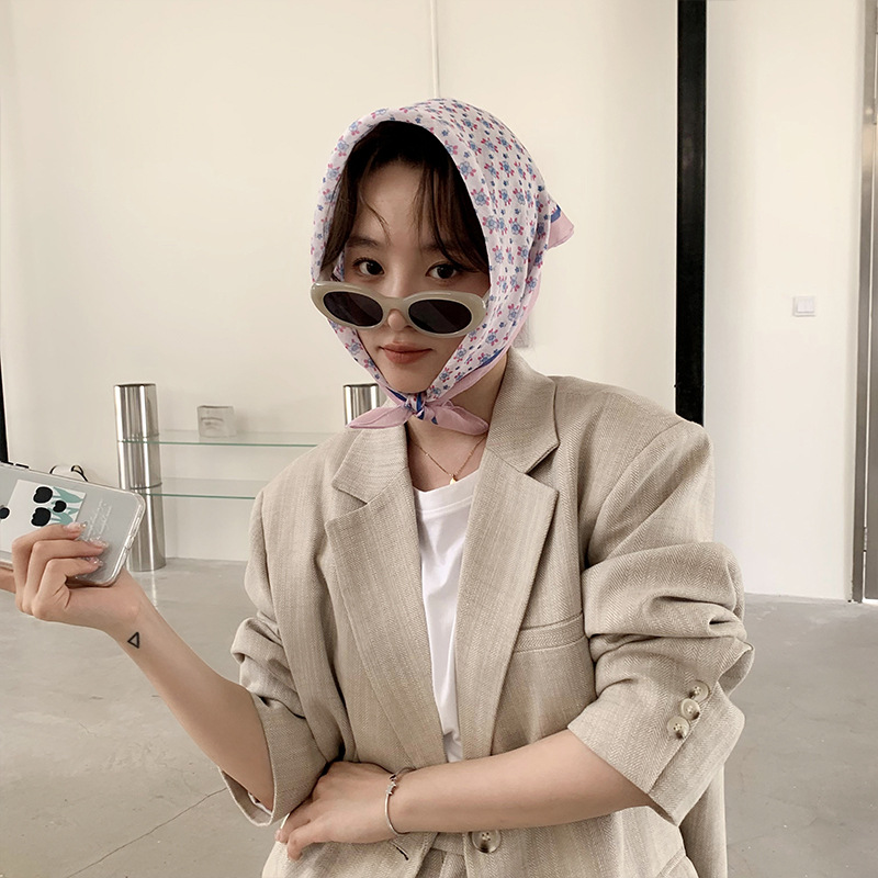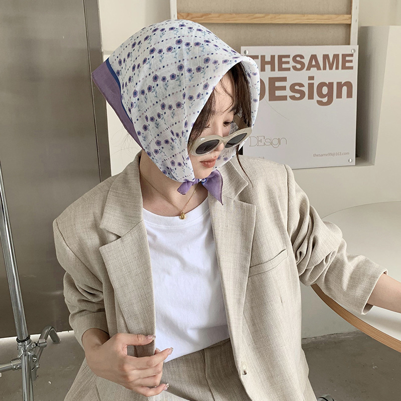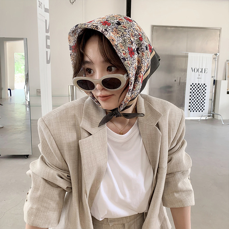 봄과 가을 새로운 58 면과 린넨 작은 사각형 스카프 여성의 모든 일치 장식 예술적 한국 작은 실크 스카프 얇은 스카프 타워스토어 가기