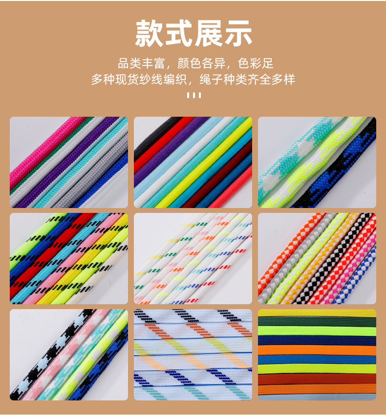 제조업체 맞춤형 원형 코어 로프, 신발끈, 색상이 다른 점이 있는 평평한 속이 빈 로프, 바지끈, DIY