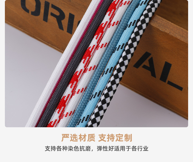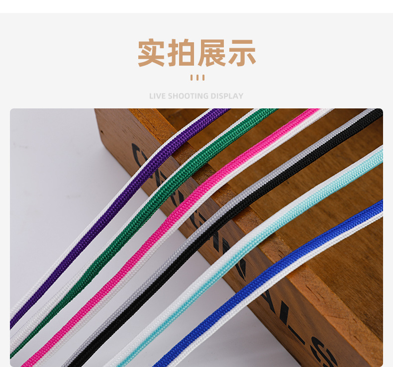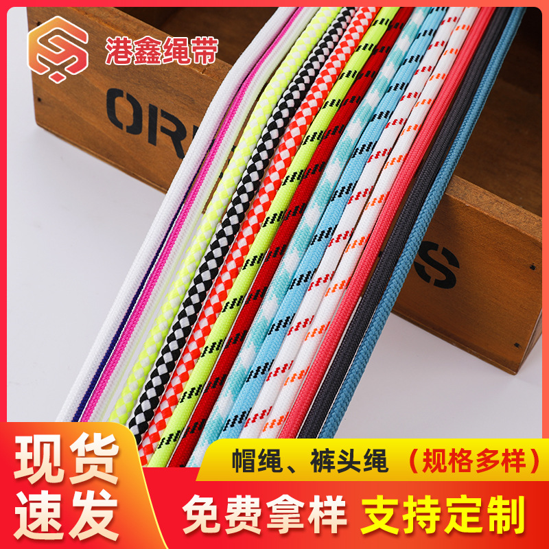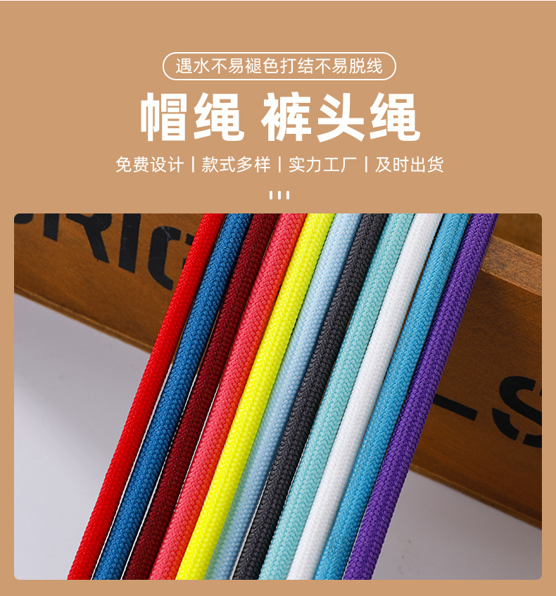 제조업체 맞춤형 원형 코어 로프, 신발끈, 색상이 다른 점이 있는 평평한 속이 빈 로프, 바지끈, DIY스토어 가기