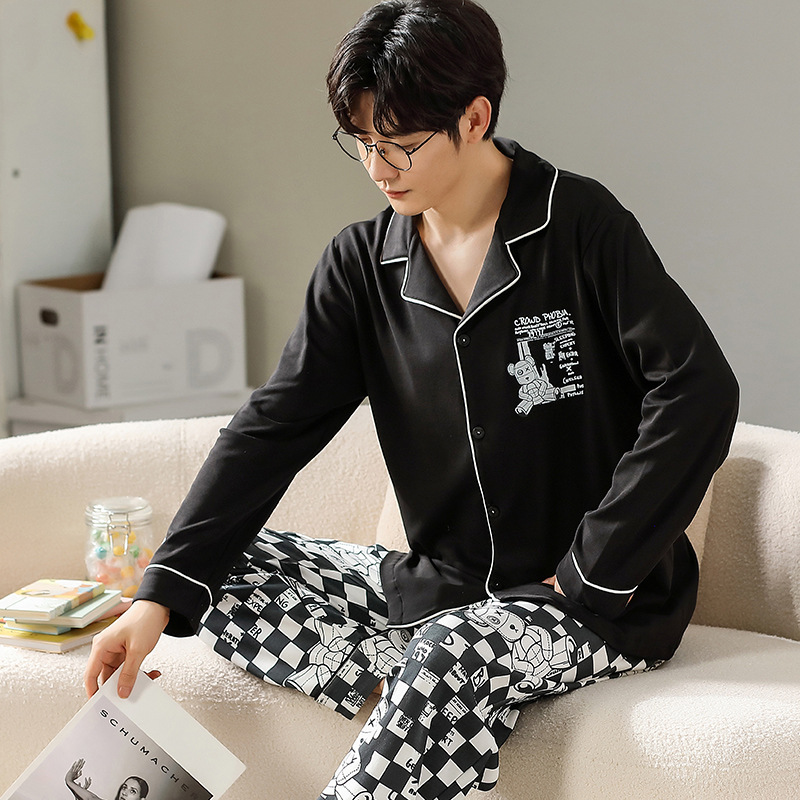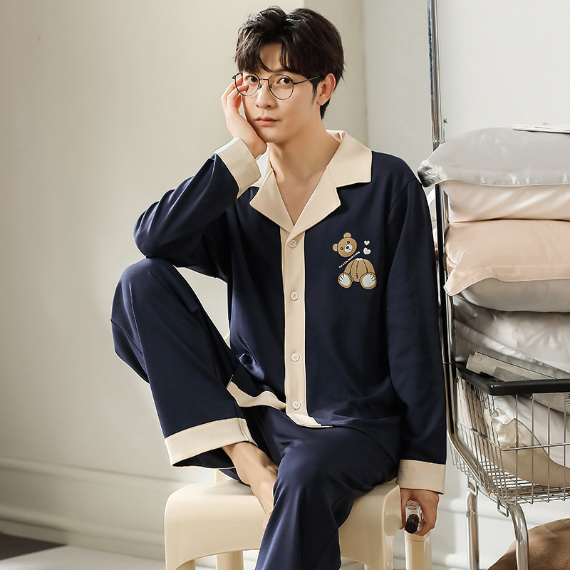잠옷 남자 봄과 가을과 겨울 면 긴 소매 남자 홈 옷 남자는 세트 남자 잠옷 긴 소매 도매 착용 할 수 있습니다
