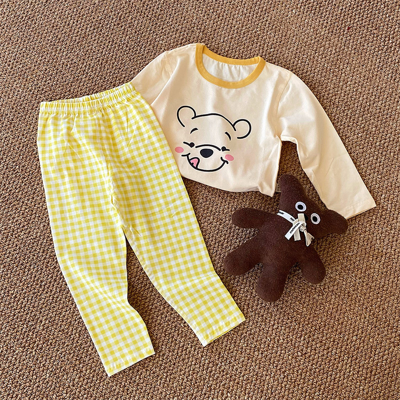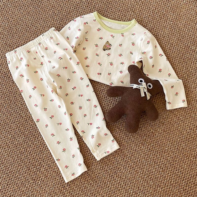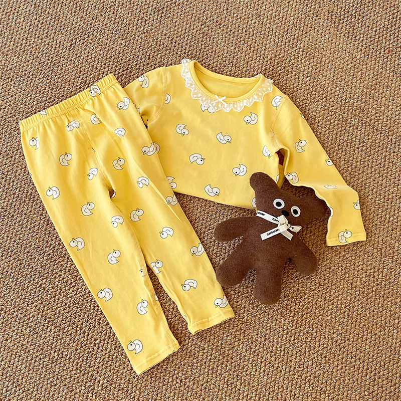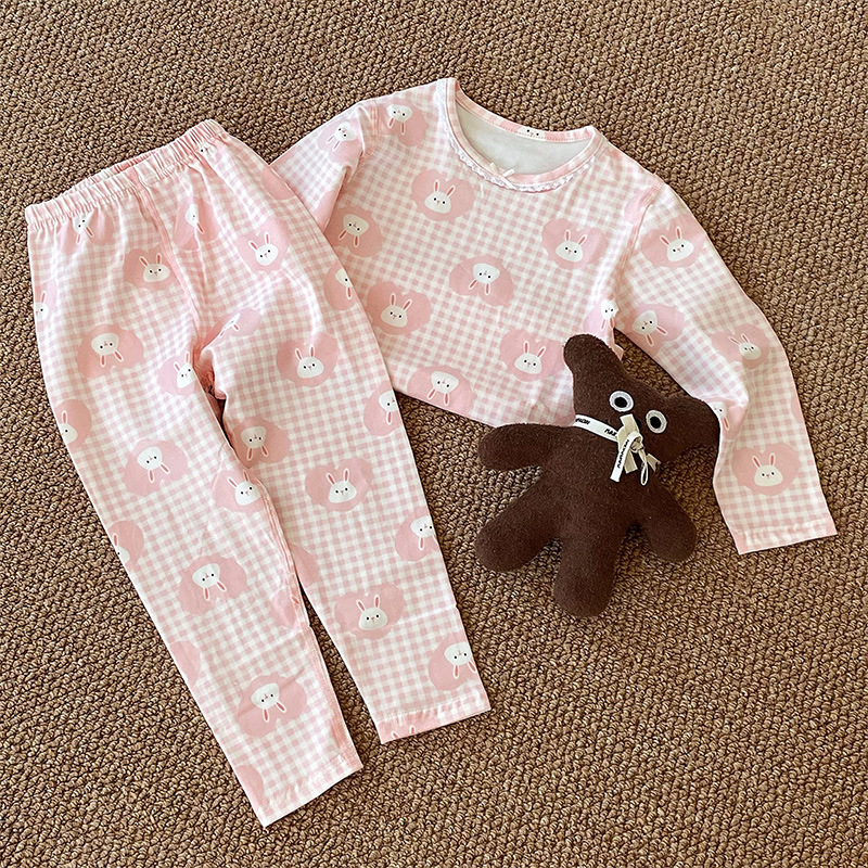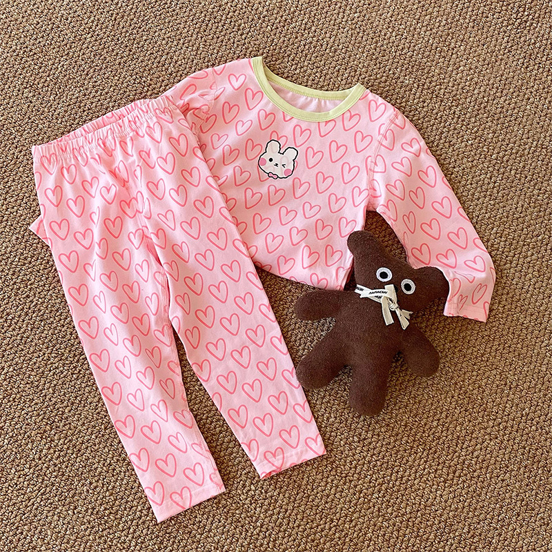 Miao Xuan 2023 세트 봄과 가을 아동복 아동 잠옷 새로운 한국 스타일 여아 홈웨어 면 만화 투피스 세트
