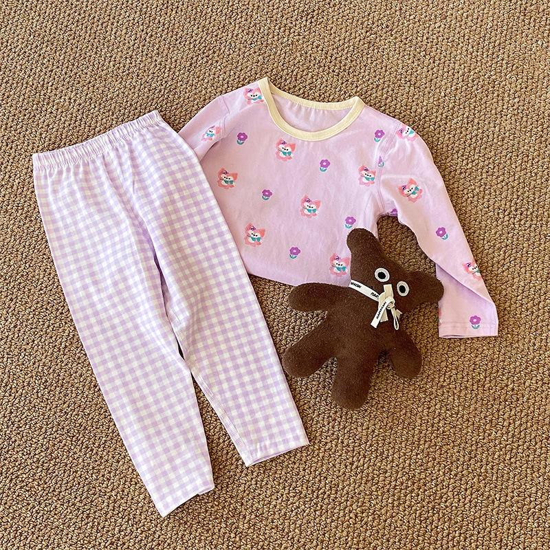 Miao Xuan 2023 세트 봄과 가을 아동복 아동 잠옷 새로운 한국 스타일 여아 홈웨어 면 만화 투피스 세트스토어 가기