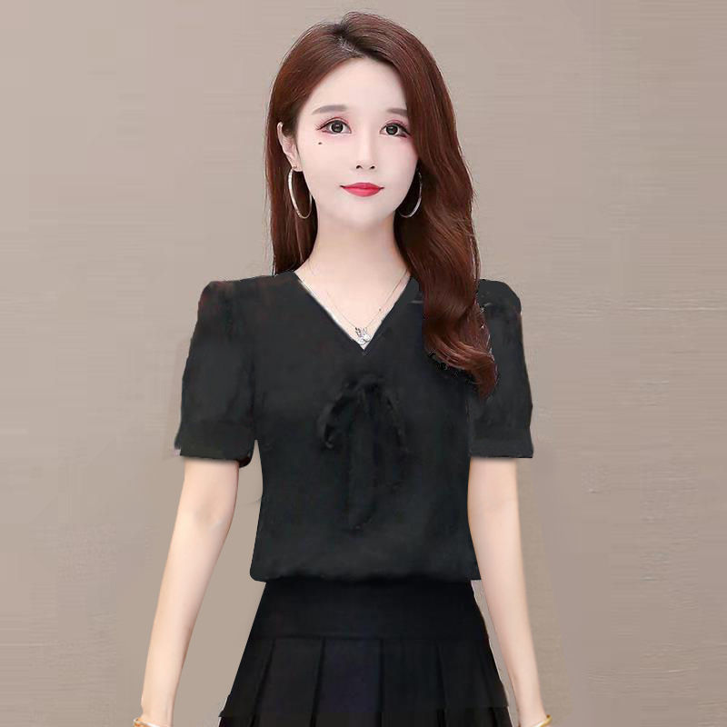 여성을위한 꽃 쉬폰 탑 여름 2024 새로운 우아한 슬림 핏 배꼽 커버 슬리밍 유행 연령 감소 짧은 소매 서양식 작은 셔츠스토어 가기