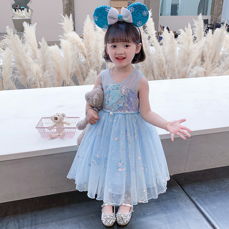 夏款爱莎公主裙女童梦幻蓬蓬纱裙冰雪奇缘小女孩无袖连衣裙子礼服