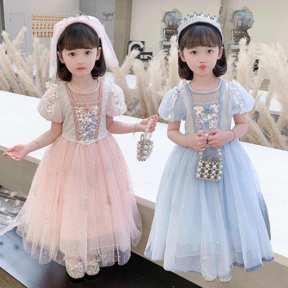 2022春夏新款爱莎公主裙女童甜美礼服裙仙女风蓬蓬纱裙女宝宝夏装