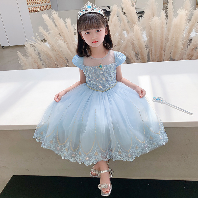 女童连衣裙夏装灰姑娘公主裙儿童冰雪奇缘公主裙蓬蓬网纱高端礼服