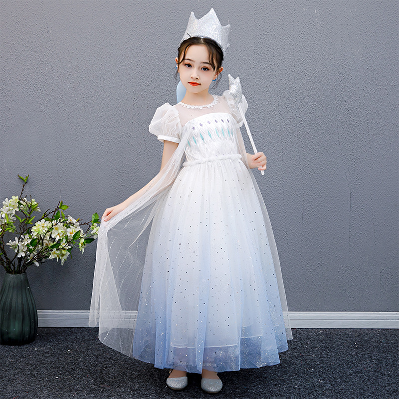 2021新款冰雪奇缘爱莎公主裙夏季女童短袖渐变连衣裙生日礼服裙子