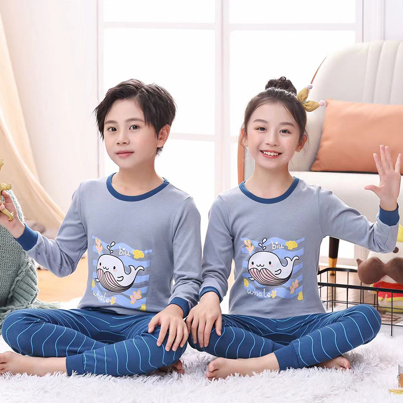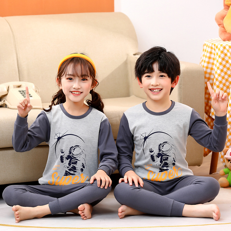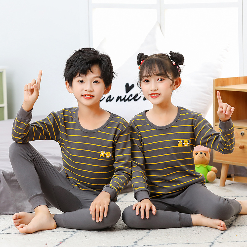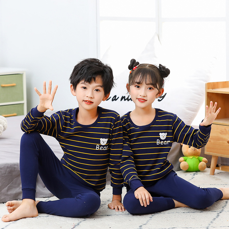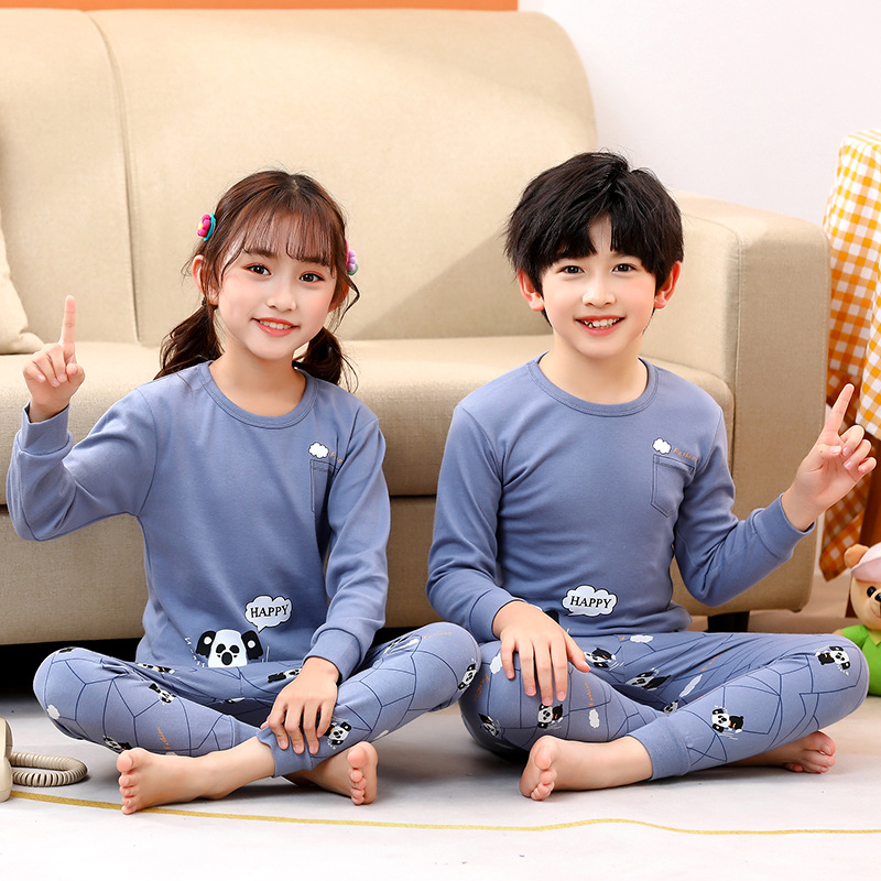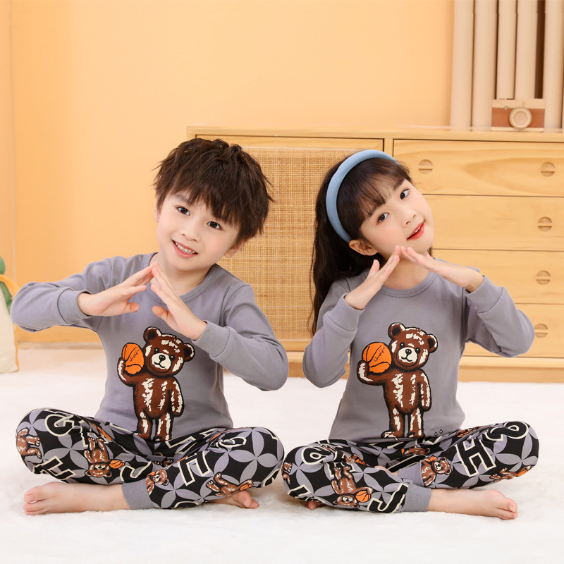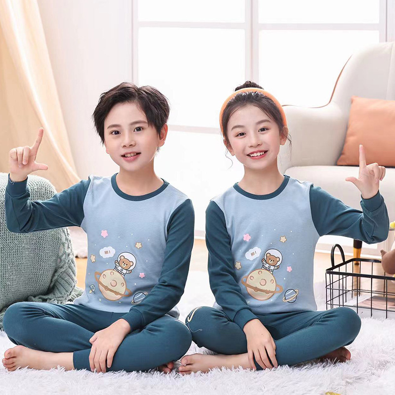 2024 중소 규모의 소녀와 소년을위한 새로운 속옷 세트 가을 봄, 가을 가정 의류 얇은 순수 면화 어린이 가을 옷과 가을 바지