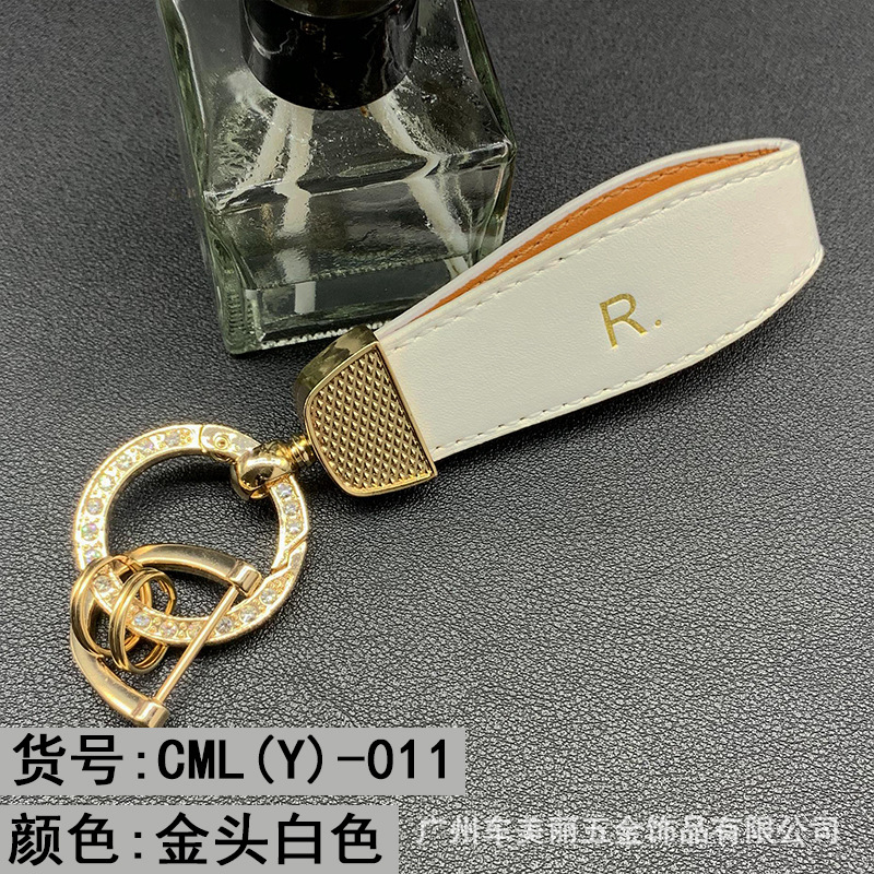 창조적 인 새로운 청동 로고 자동차 열쇠 고리 아연 합금 pu 가죽 자동차 열쇠 고리 펜던트 보석