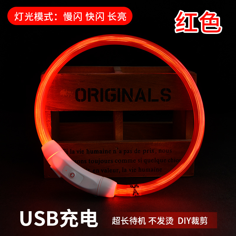 공장 직접 공급 섬유 LED 발광 칼라 멀티 컬러 USB 충전 개 목걸이 애완 동물 용품 절단 가능