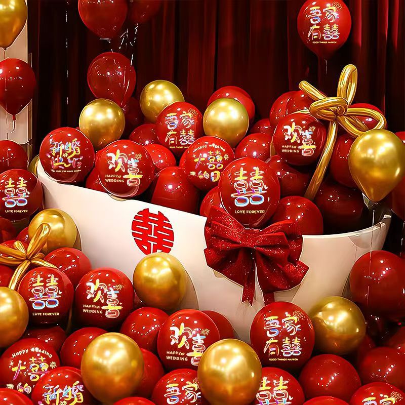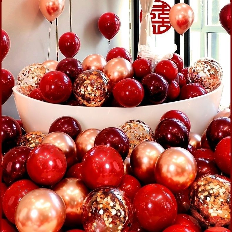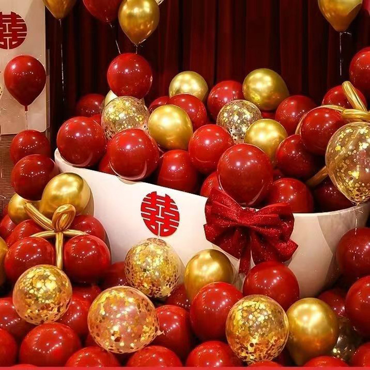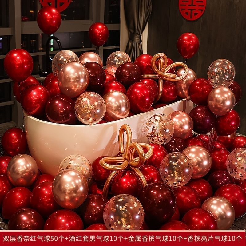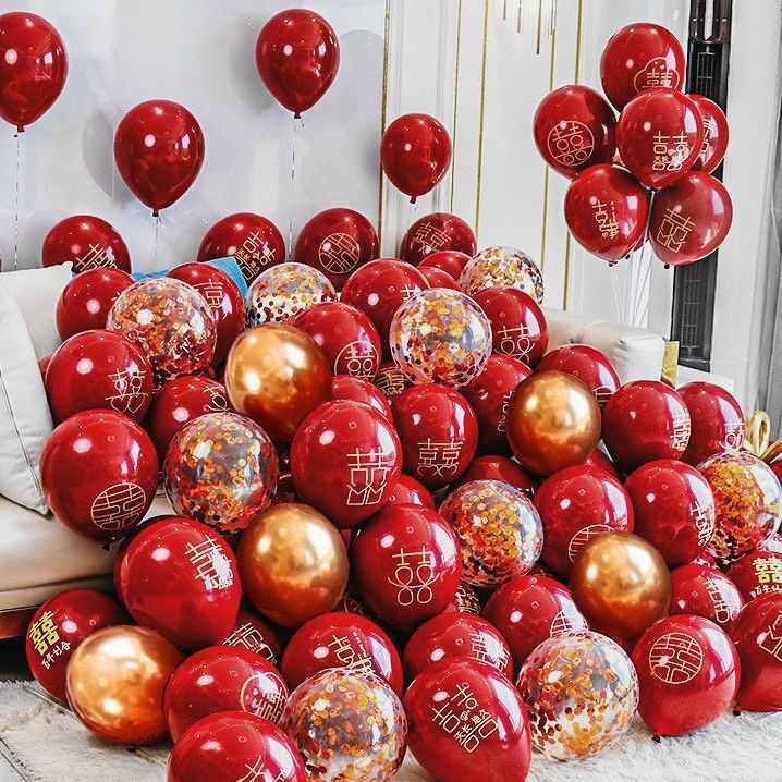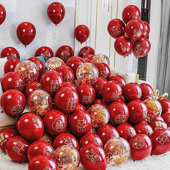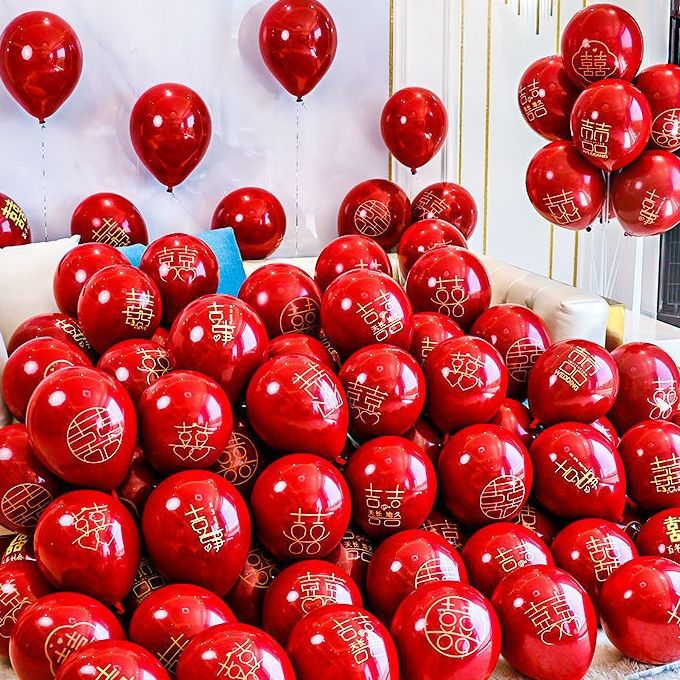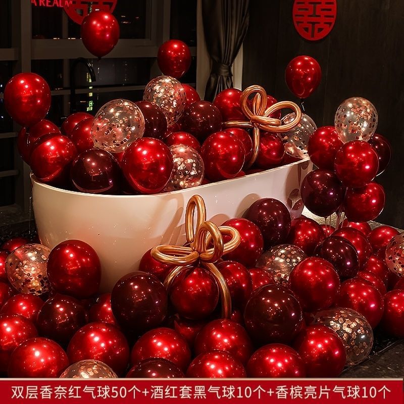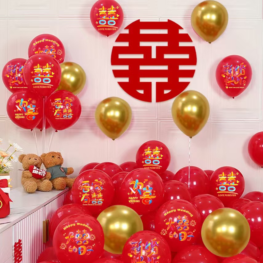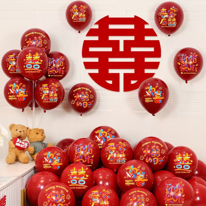 웨딩 풍선 해피 캐릭터 석류 레드 더블 레이어 첸나이 레드 풍선 패키지 웨딩 룸 장면 레이아웃 장식 웨딩 용품스토어 가기