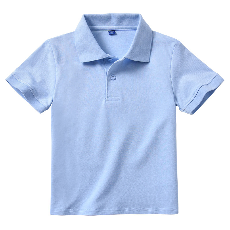 아동용 블루 폴로 셔츠 반팔 면 남아 라펠 티셔츠 여름 교복 여아 중년 이상 어린이 반팔 티셔츠