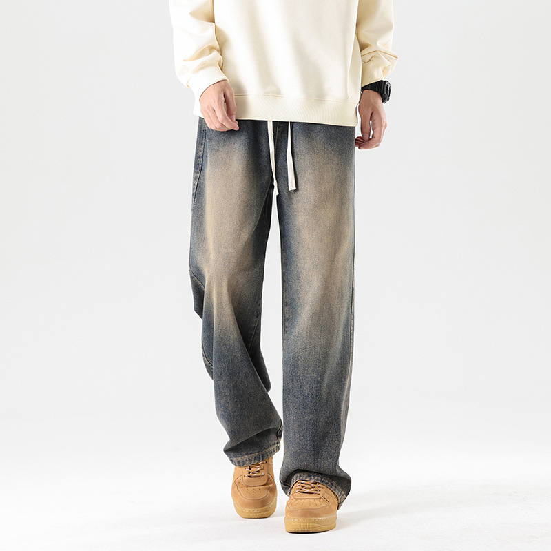미국 청바지 남성 유행 브랜드 스트레이트 느슨한 패션 툴링 2024 봄과 가을 새로운 청소년 폭발 바지스토어 가기