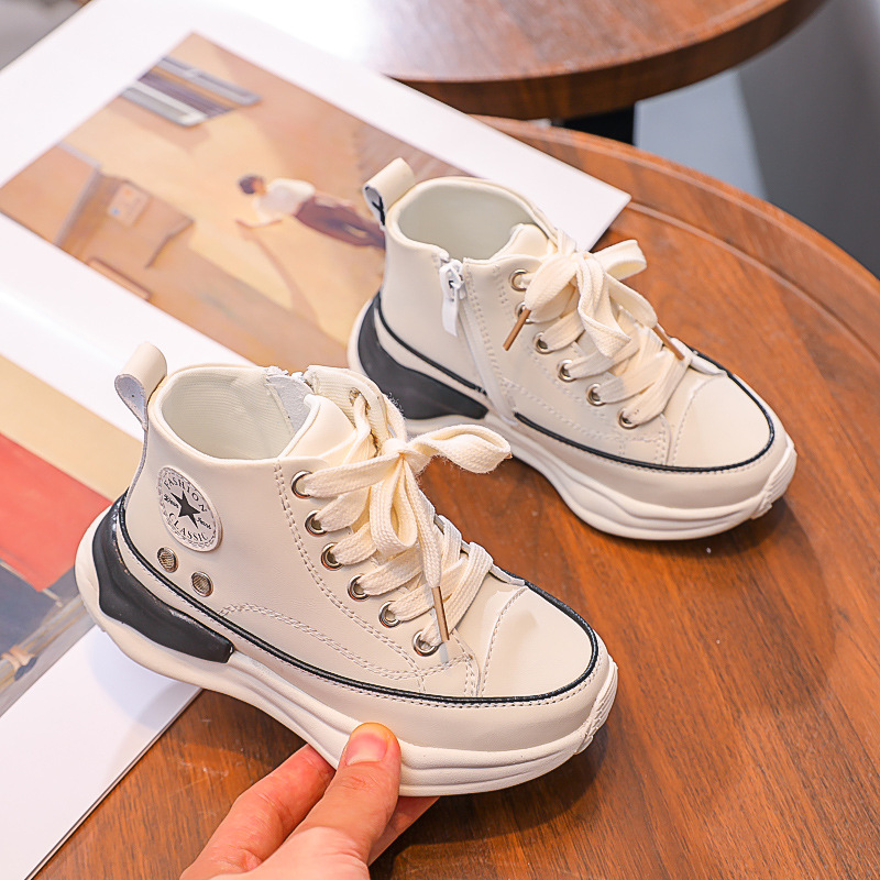 소년 하이 탑 운동화 2023 가을과 겨울 새로운 어린이 부드러운 바닥 다목적 캐주얼 신발 소녀의 통기성 흰색 신발 패션스토어 가기
