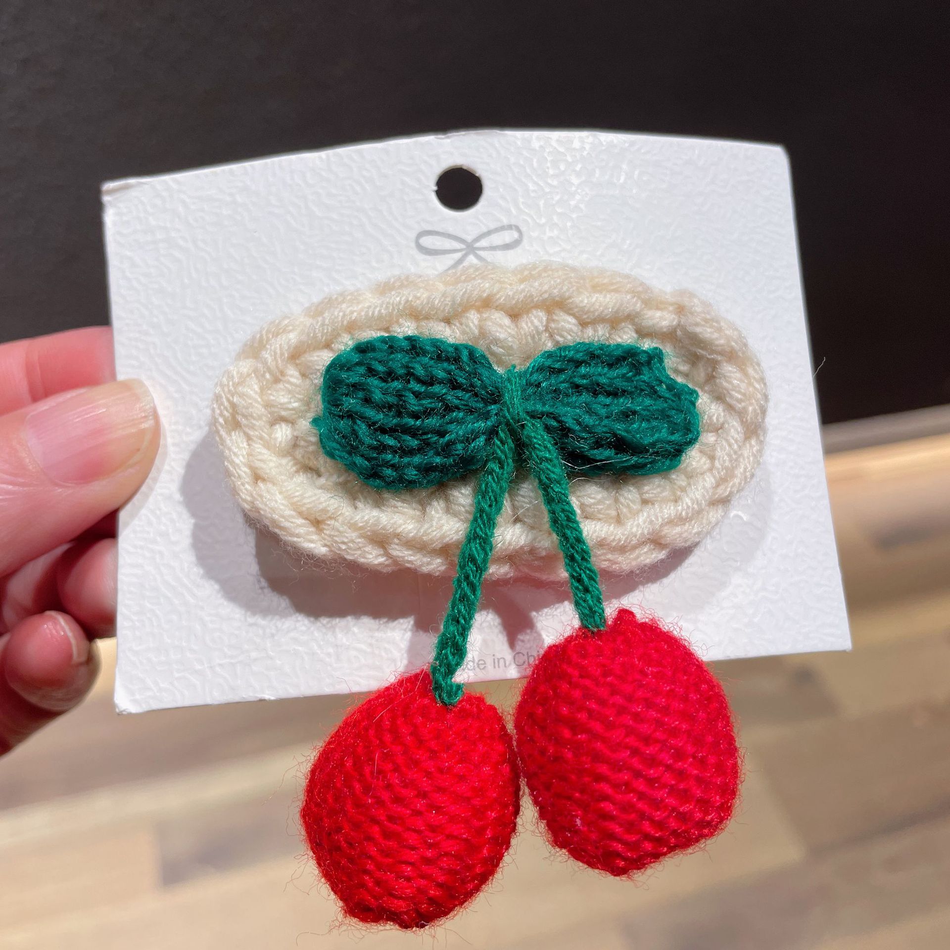 인터넷 유명 인사 새로운 손으로 짠 울 체리 앞머리 클립 머리핀 우아한 귀여운 소녀 사이드 클립 부티크 헤어 액세서리스토어 가기