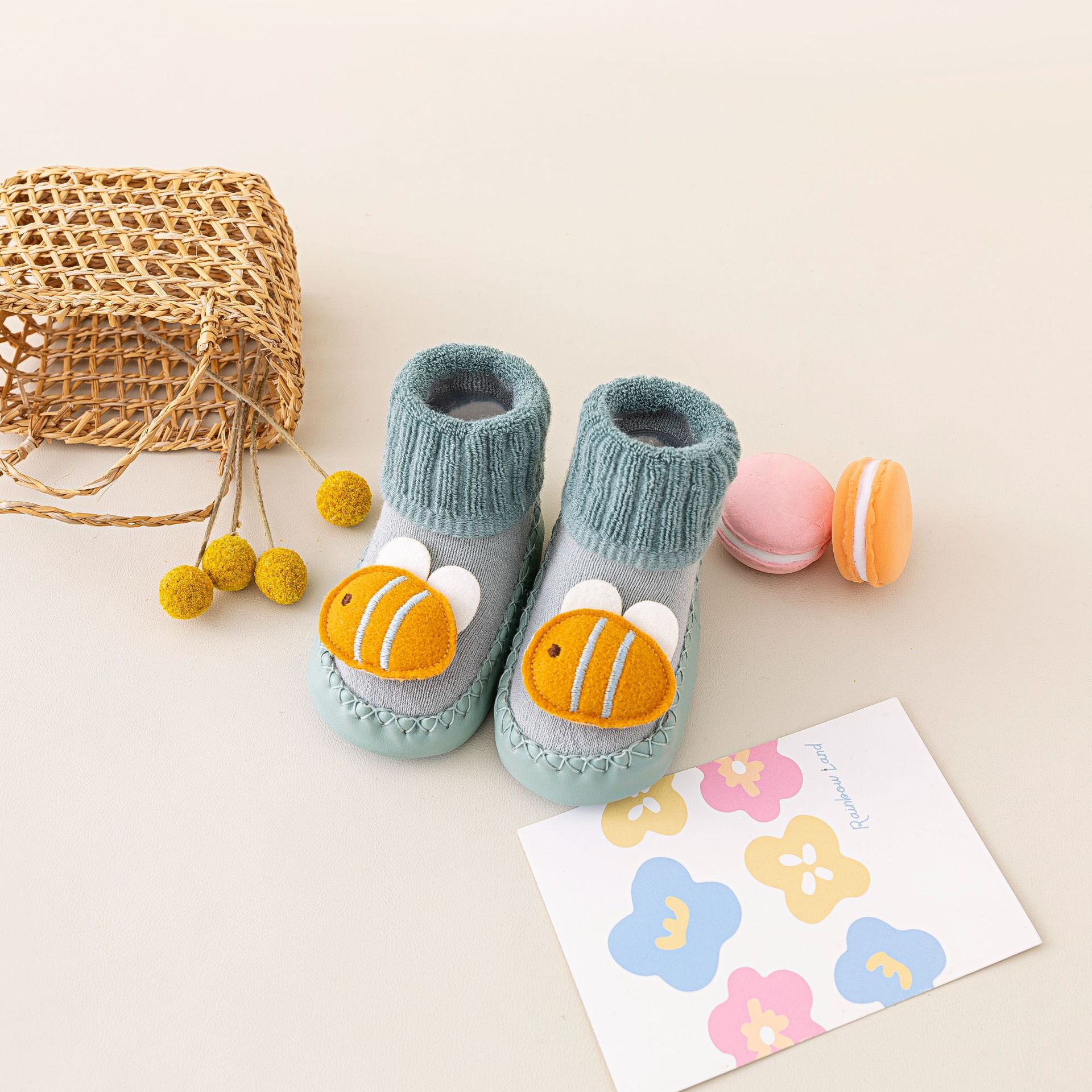 새로운 가을과 겨울 어린이 테리 양말 신발 두꺼운 따뜻한 아기 유아 신발 미끄럼 방지 시원한 바닥 신발 및 양말스토어 가기