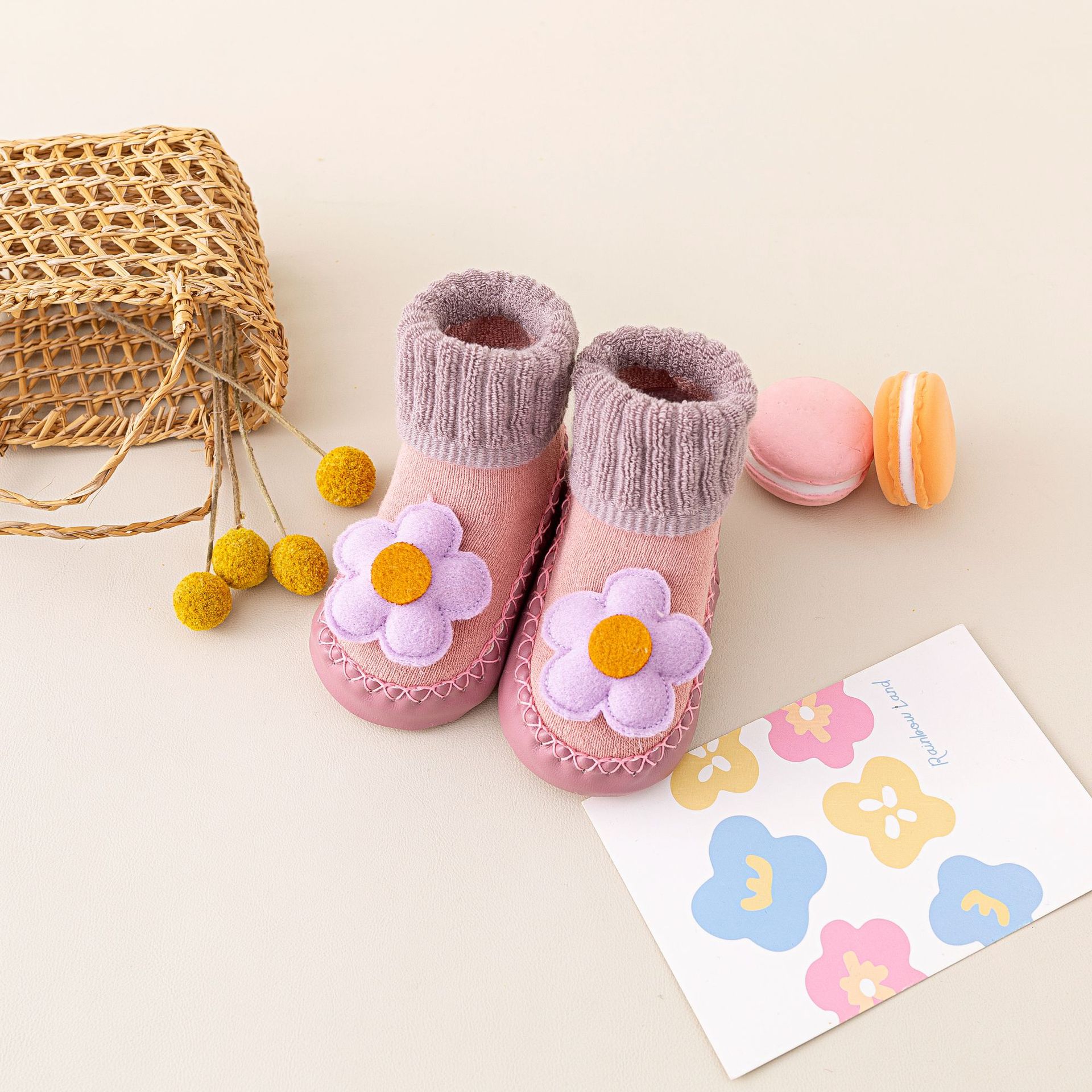 새로운 가을과 겨울 어린이 테리 양말 신발 두꺼운 따뜻한 아기 유아 신발 미끄럼 방지 시원한 바닥 신발 및 양말