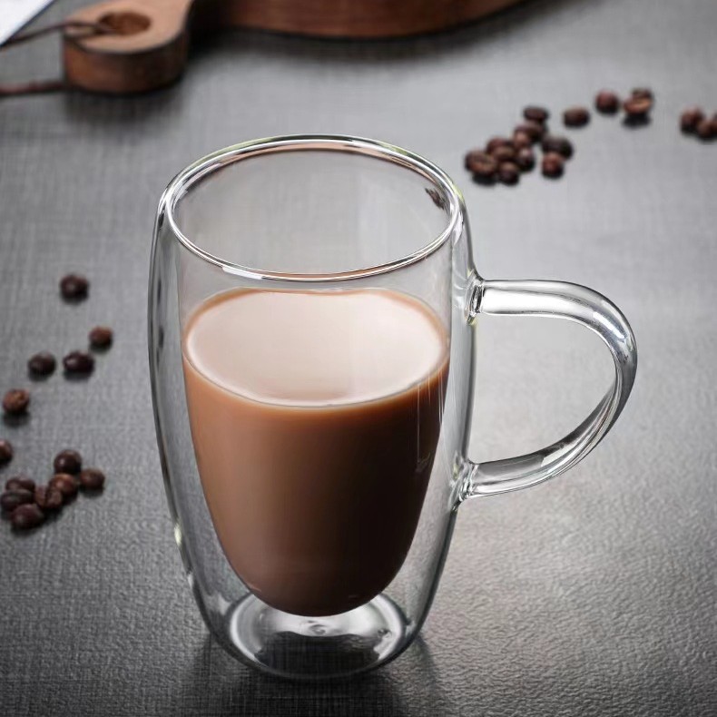 가정용 투명 이중층 유리 컵 창조적 인 내열성 꽃 찻잔 단열 이중층 유리 우유 주스 커피 컵스토어 가기