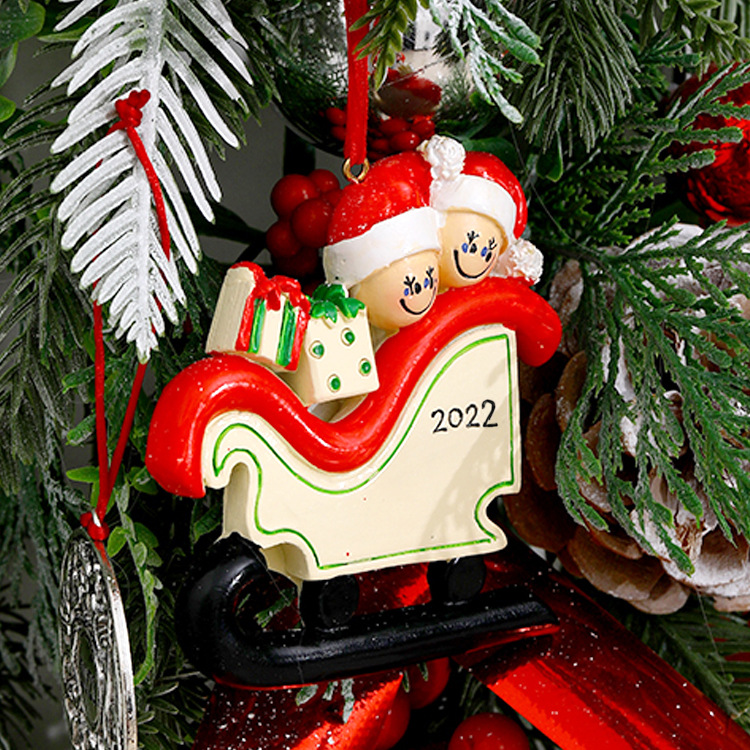 국경 간 새로운 2022 크리스마스 장식 수지 펜던트 가족 크리스마스 트리 쓰기 가능한 이름 펜던트 장식