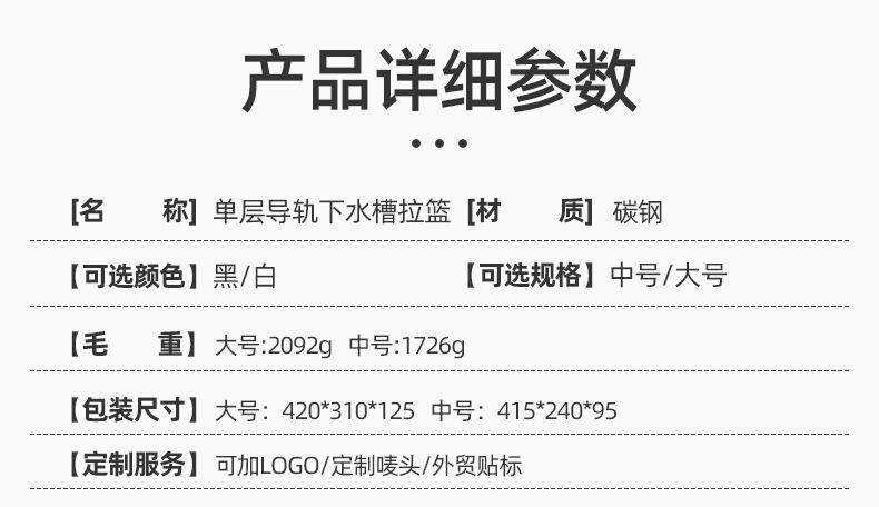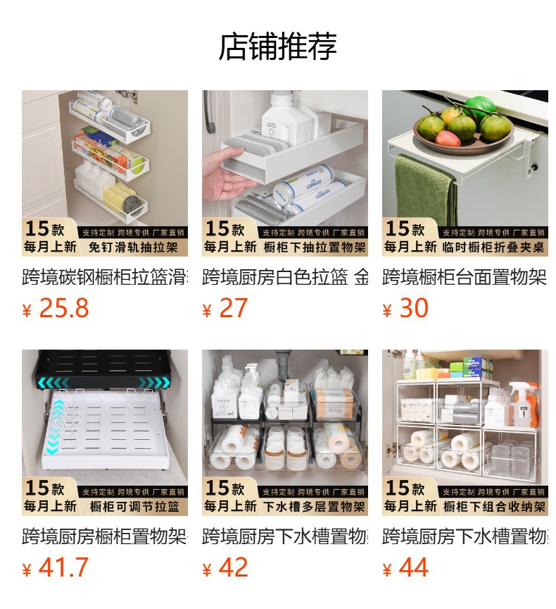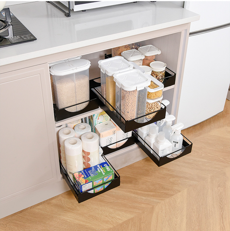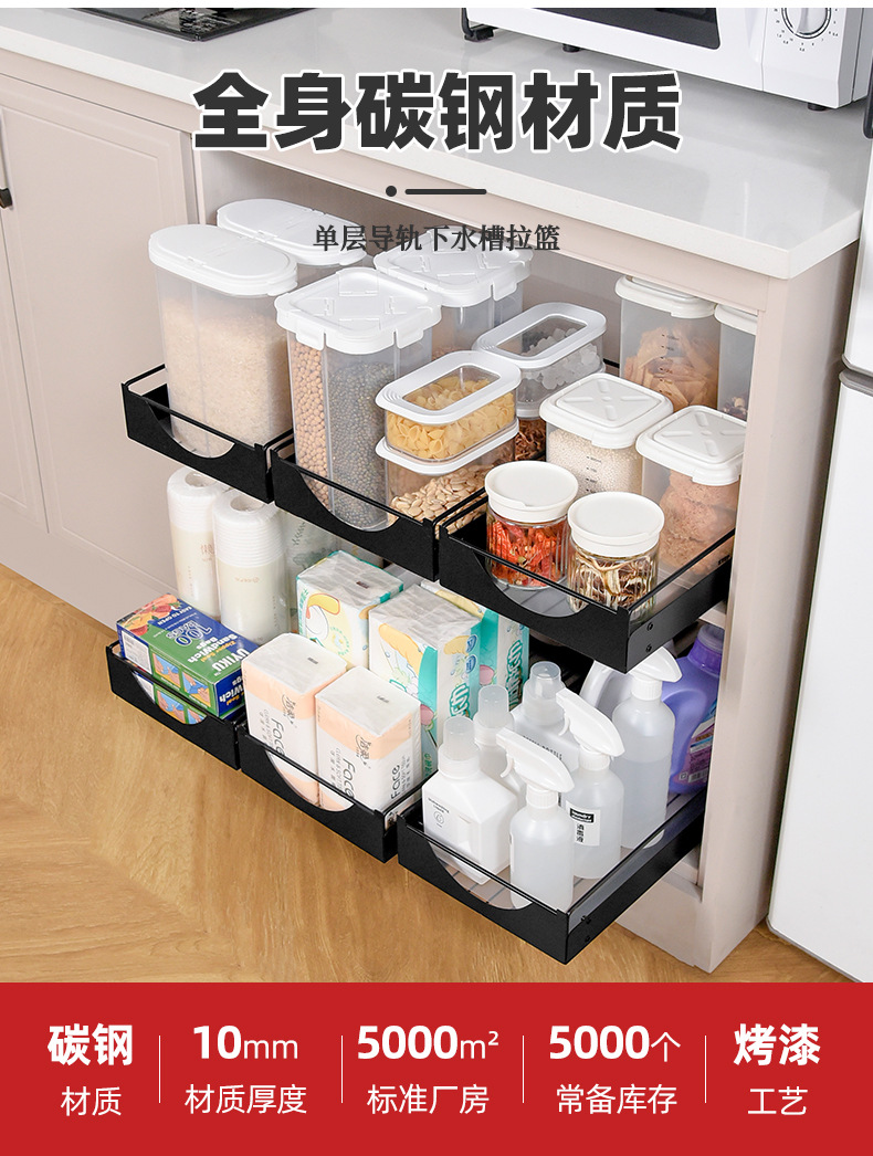 크로스보더 캐비닛 수납 선반 주방 단층 레일 서랍형 수납 선반 싱크대 아래 서랍형 수납 선반