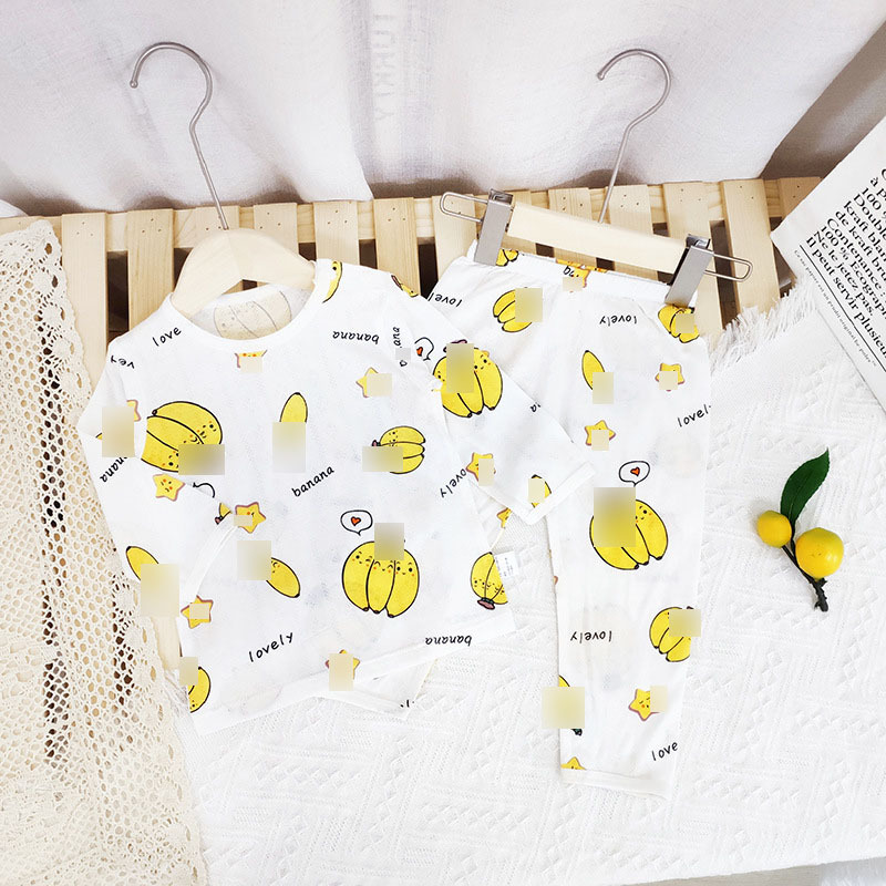 73-130 크기 남성과 여성 아기 여름 대나무 섬유 에어컨 의류 세트 아기 얇은 통기성 잠옷 속옷 배달