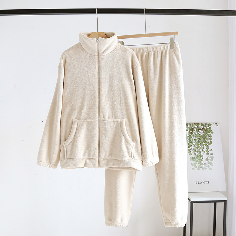 커플 [슈퍼 소프트] 지퍼 커플 잠옷 여자의 가을과 겨울 산호 양털 기모 두꺼운 가정 옷 남자의 세트