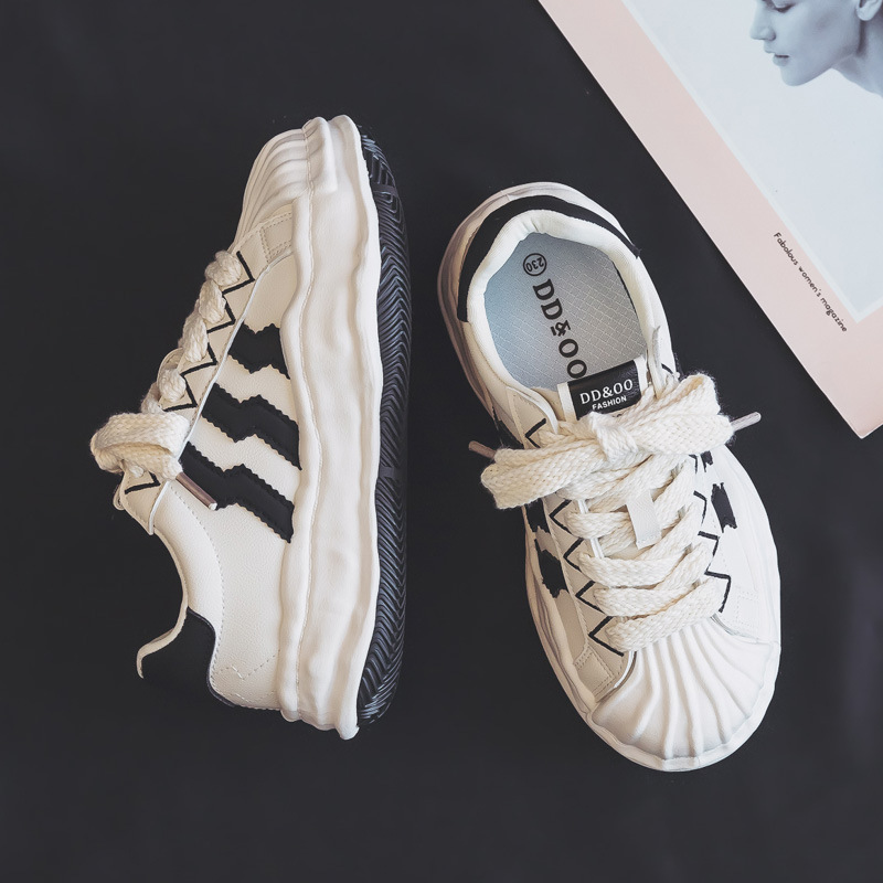 Ddoo 틈새 쉘 화이트 신발 여성 신발 2023 새로운 폭발 트렌디 한 스포츠 보드 신발 아빠 신발의 모든 일치스토어 가기