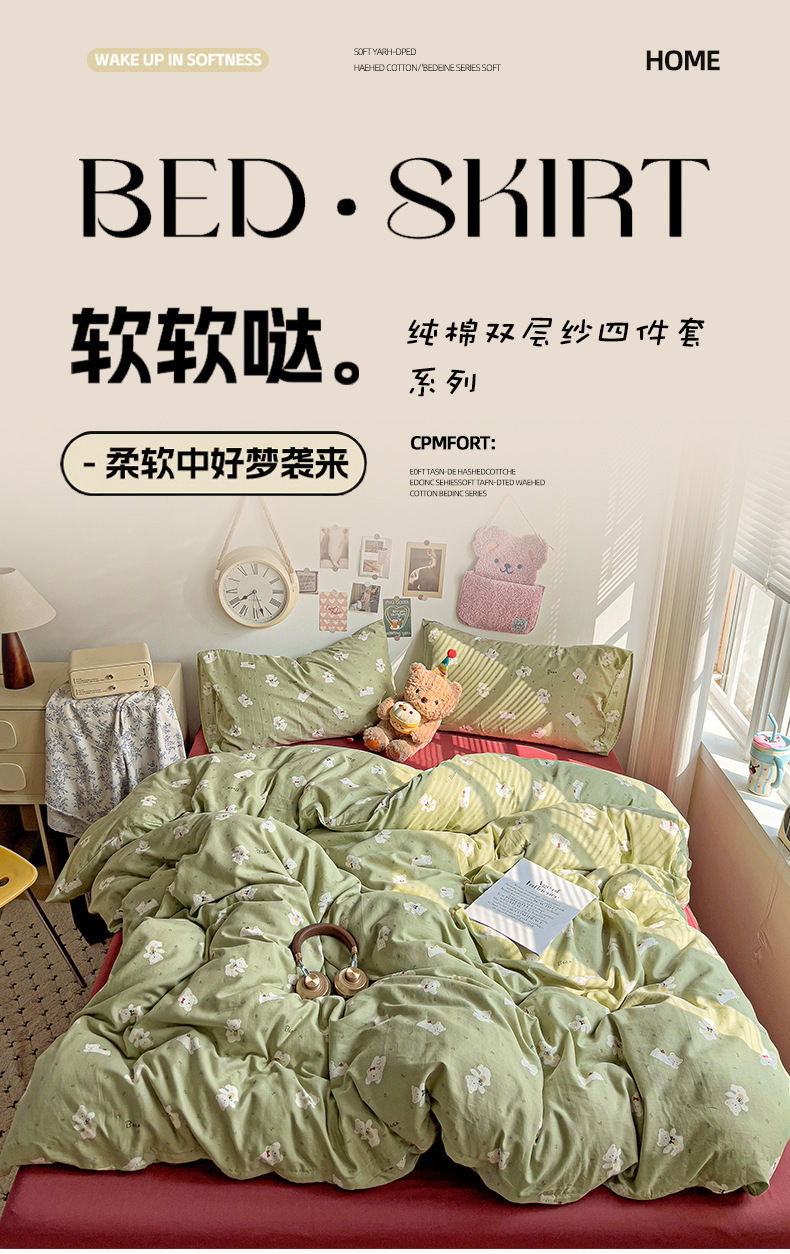 A급 산모급 면 2 층 원사 4 종 세트 in 바람 면 침대 시트 침구 이불 커버 난통 홈 섬유 도매