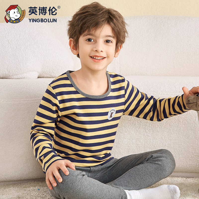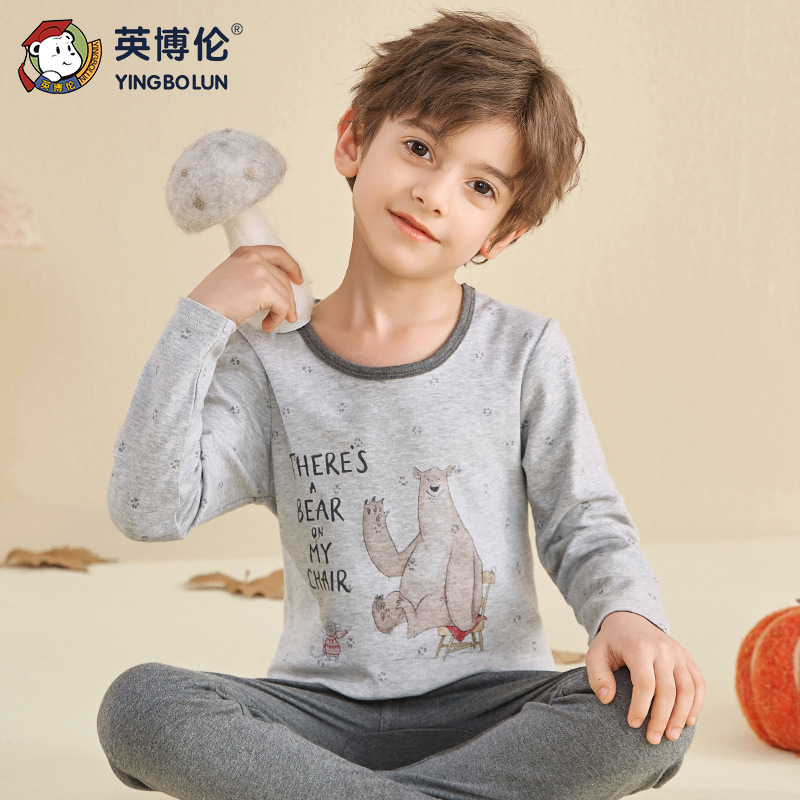 Yingbron 가을과 겨울 어린이 속옷 세트 순면 소년 가을 옷과 가을 바지 순면 어린이 잠옷 얇은 면 스웨터