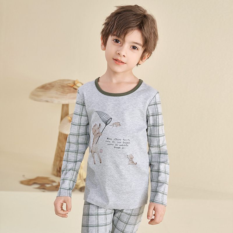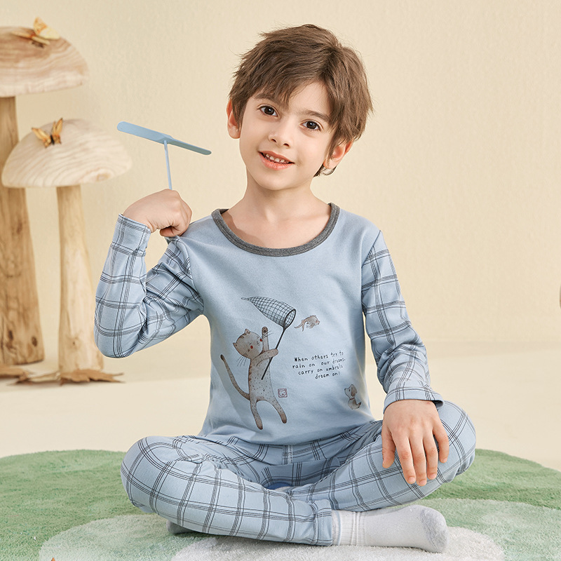 Yingbron 가을과 겨울 어린이 속옷 세트 순면 소년 가을 옷과 가을 바지 순면 어린이 잠옷 얇은 면 스웨터스토어 가기