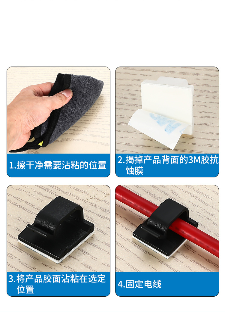 제조업체에서 나일론 WCL-4567 와이어 카드 접착식 고정대, 케이블 정리 고정기, 전선 투명 흑백 제품을 공급합니다.스토어 가기